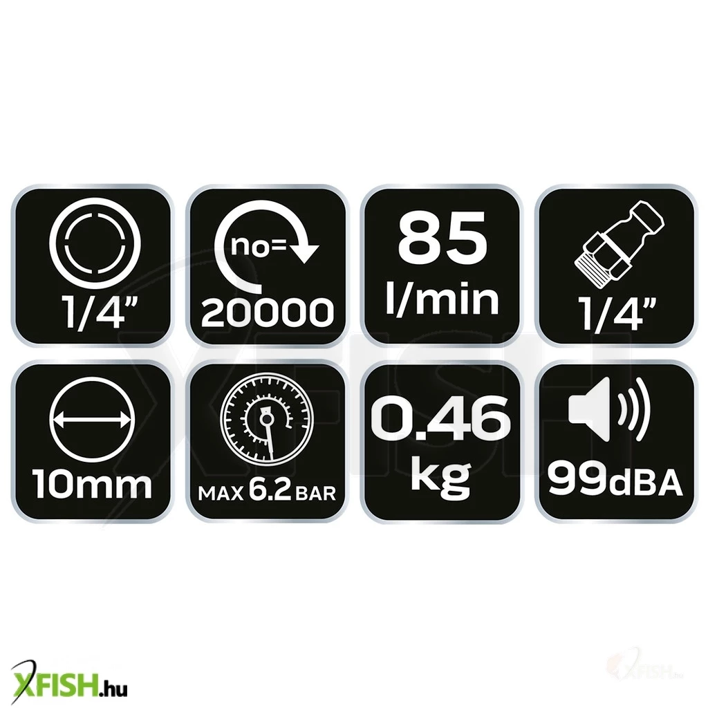 Kialakításának köszönhetően könnyen kezelhető, a 0.46 kg-os tömeg pedig biztosítja a kényelmes használatot, hosszú időn át tartó munkavégzés esetén is. A pneumatikus rendszer 6.3-7.0 bar üzemi nyomáson működik, míg a 85 liter/perc levegőigény gazdaságos működést biztosít, hozzájárulva a hosszabb élettartamhoz és alacsonyabb költségekhez.