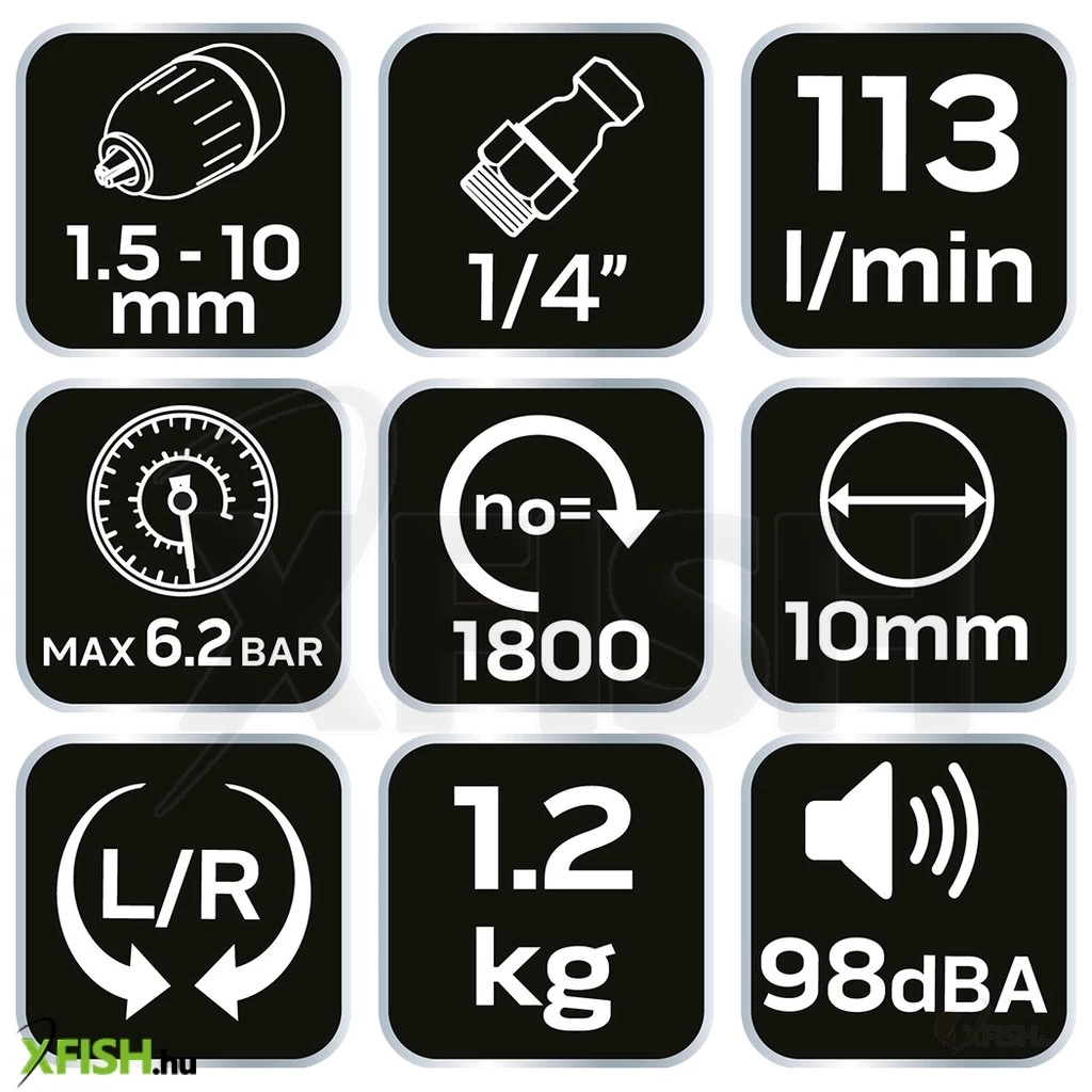 Neotools pneumatikus fúrógép, 10mm, 3/8, 1800 rpm