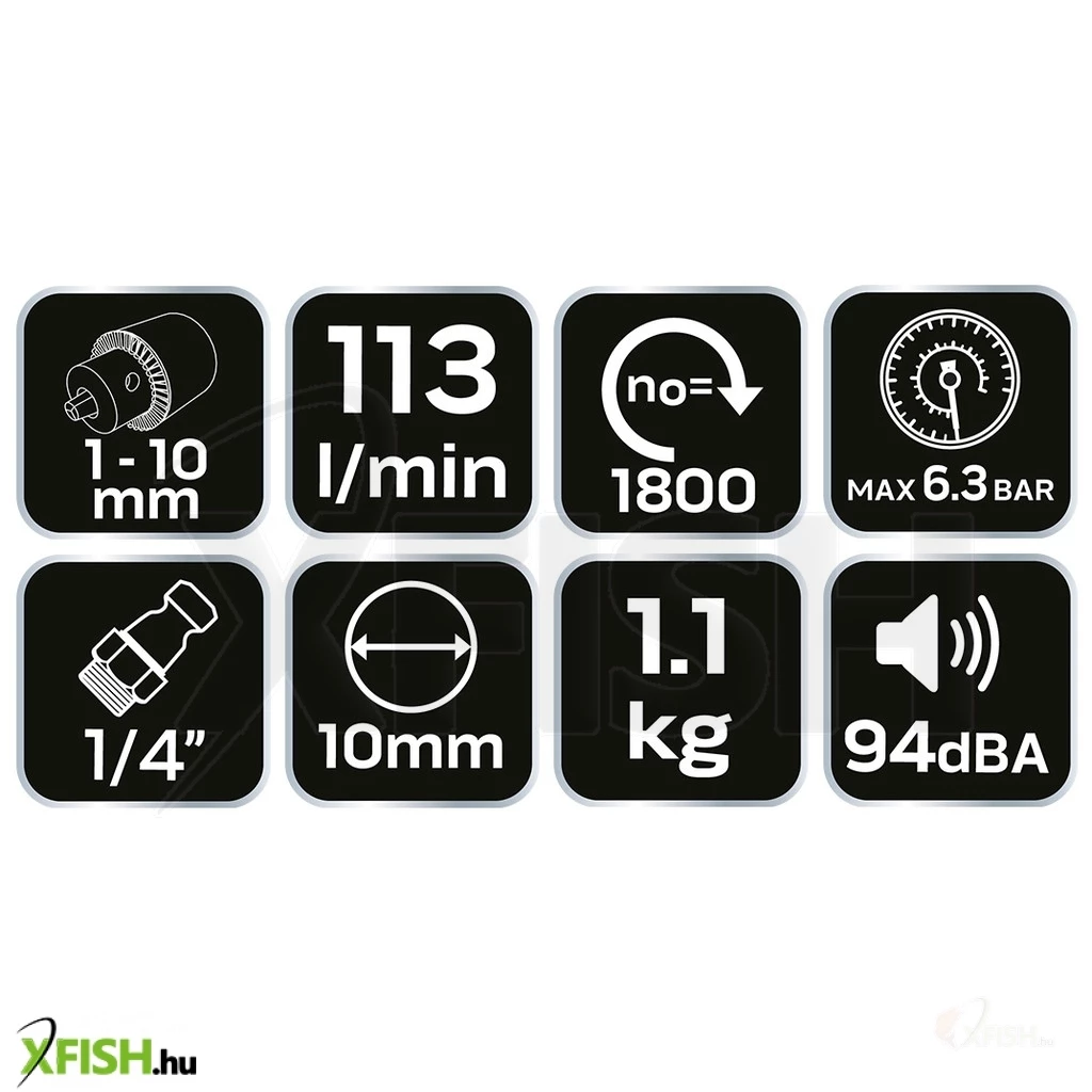 Neotools pneumatikus fúrógép, 10mm, 1800rpm, irányváltó