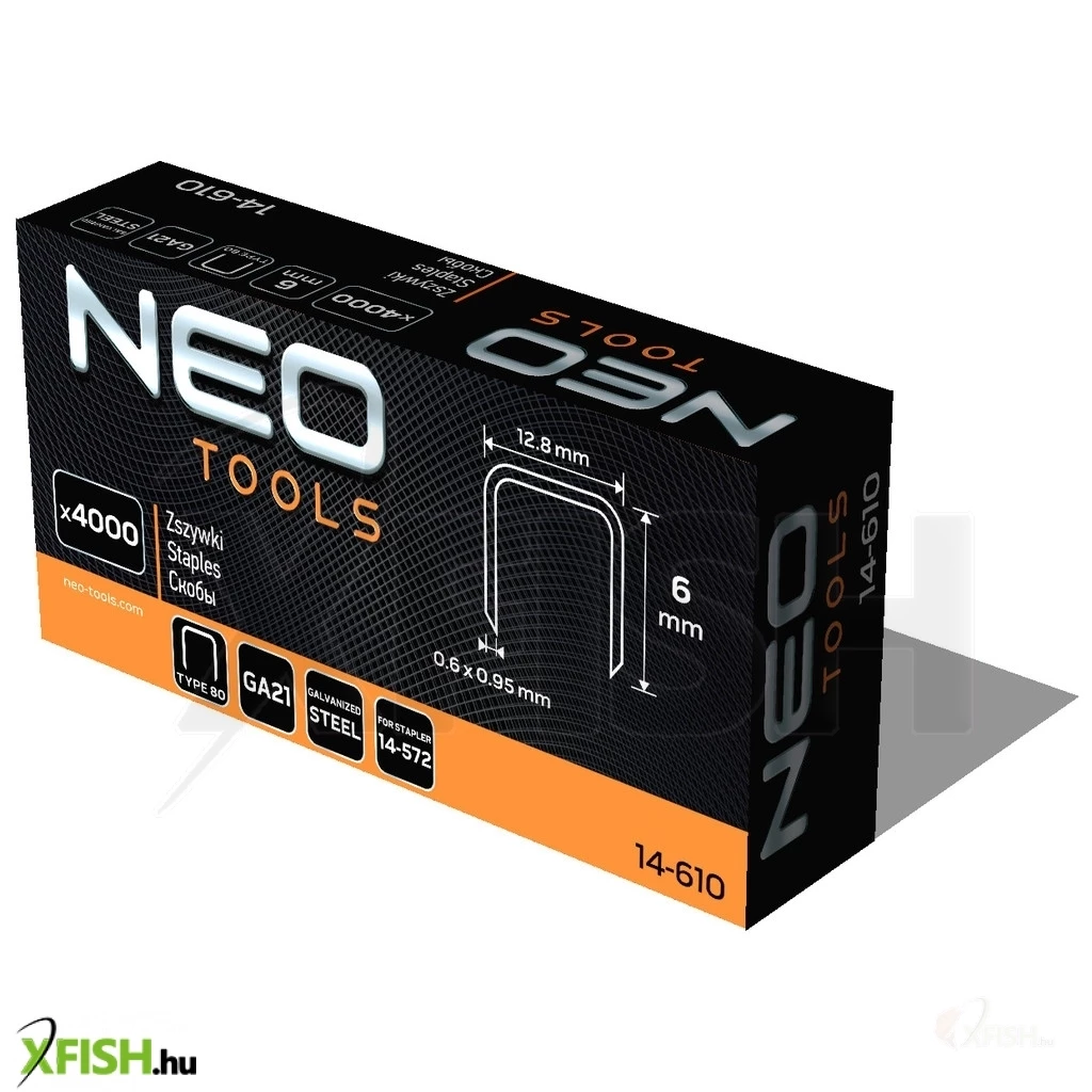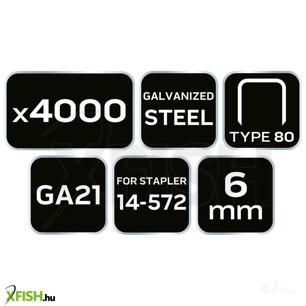 Neotools tűzőkapocs, horganyzott 80-as tipus, pneumatikus tűzőgéphez (14-572), ga21, 6mm, 4000db