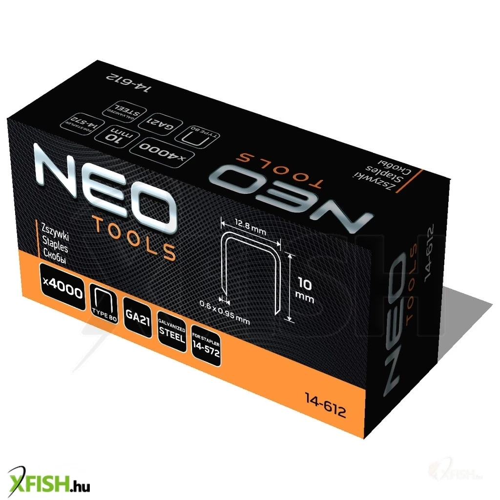 Neotools tűzőkapocs, horganyzott 80-as tipus, pneumatikus tűzőgéphez (14-572), ga21, 10mm, 4000db