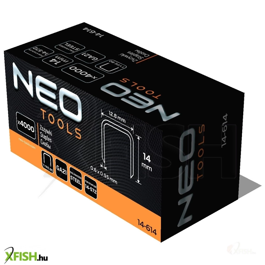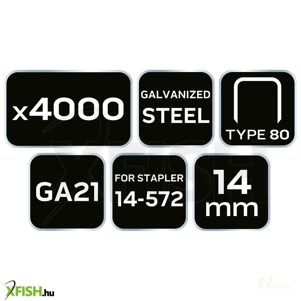 Neotools tűzőkapocs, horganyzott 80-as tipus, pneumatikus tűzőgéphez (14-572), ga21, 14mm, 4000db