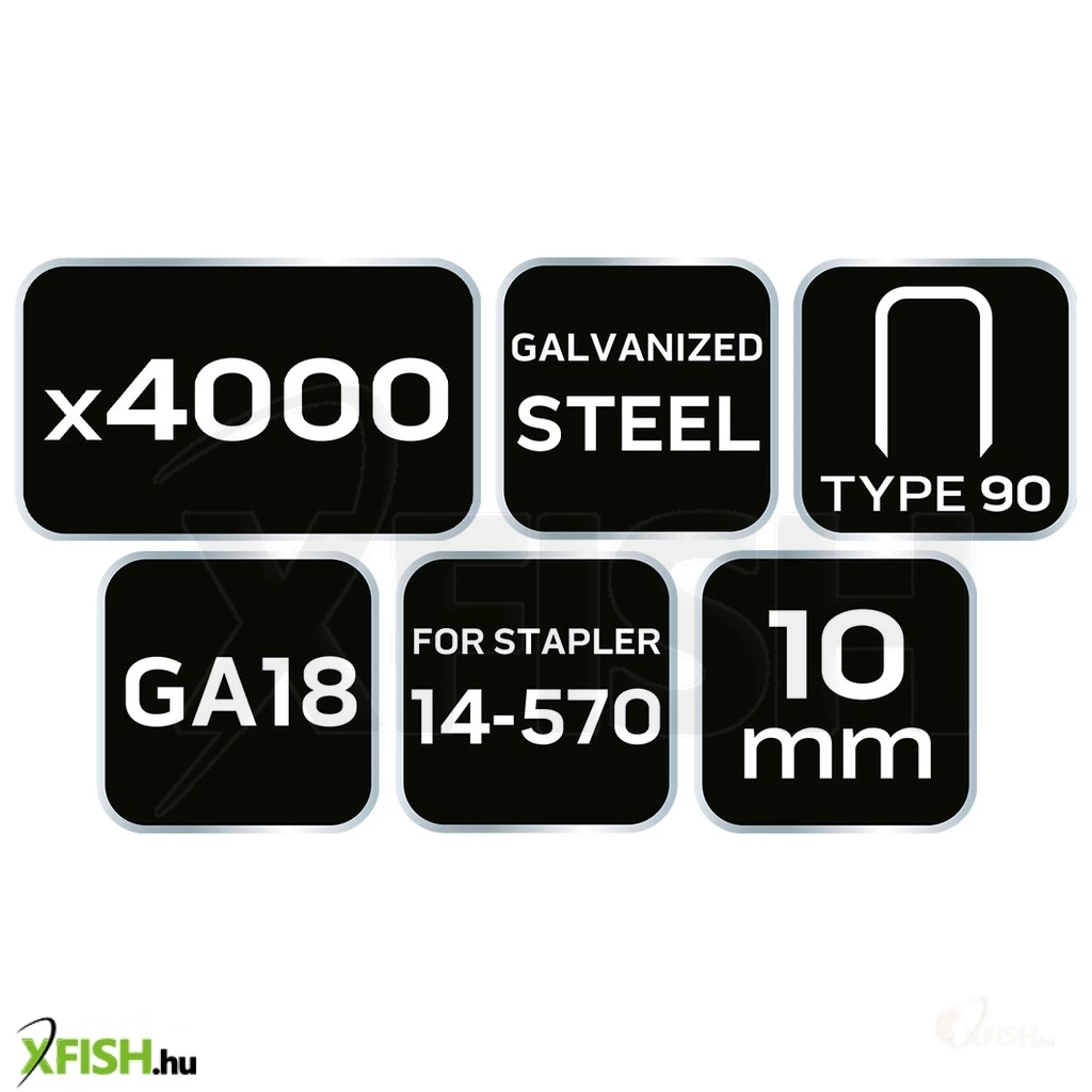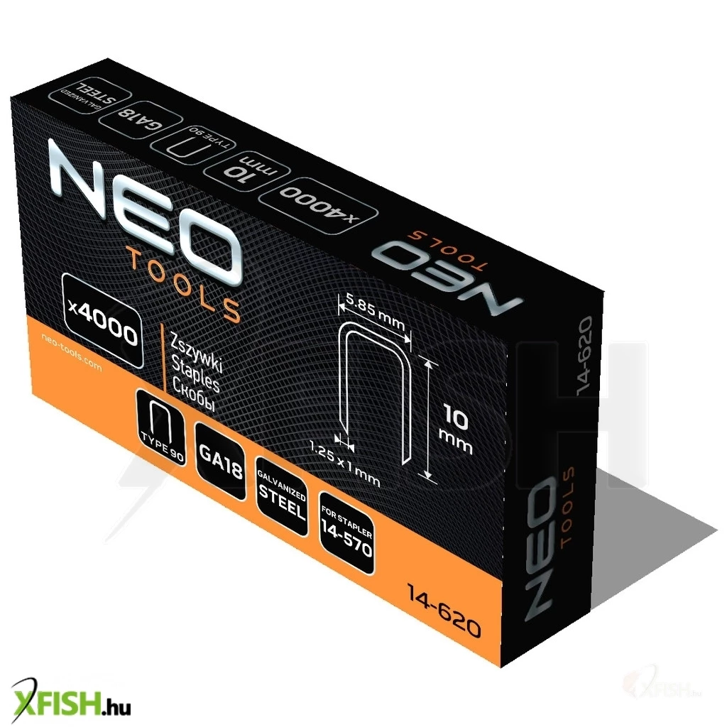 Neotools tűzőkapocs, horganyzott 90-es tipus, pneumatikus tűzőgéphez (14-570), ga18, 10mm, 4000db