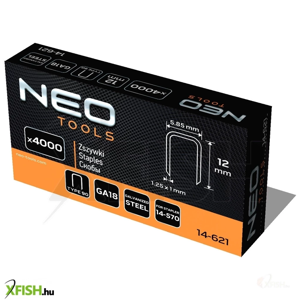 Neotools tűzőkapocs, horganyzott 90-es tipus, pneumatikus tűzőgéphez (14-570), ga18, 12mm, 4000db