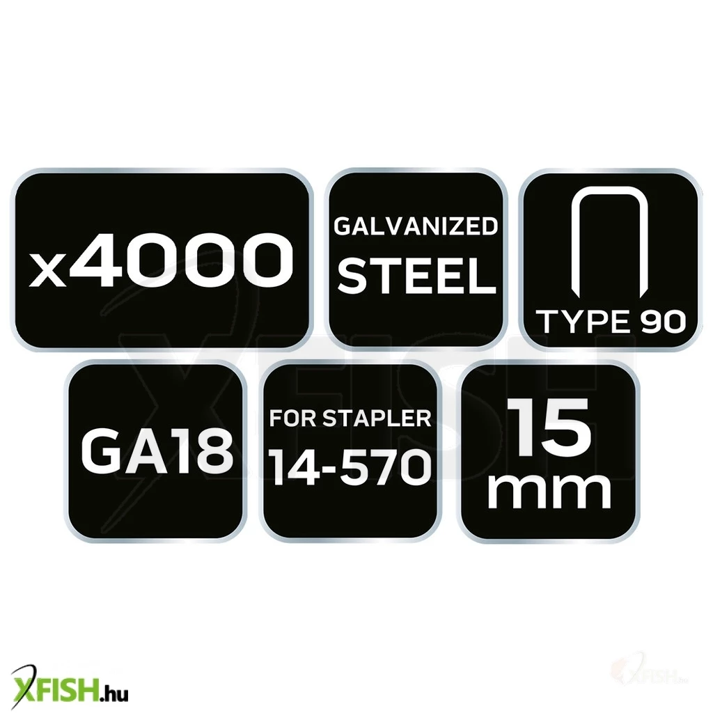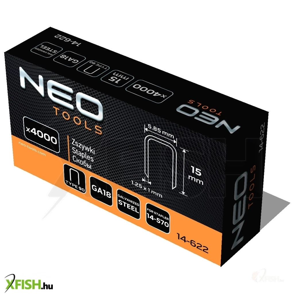 Neotools tűzőkapocs, horganyzott 90-es tipus, pneumatikus tűzőgéphez (14-570), ga18, 15mm, 4000db