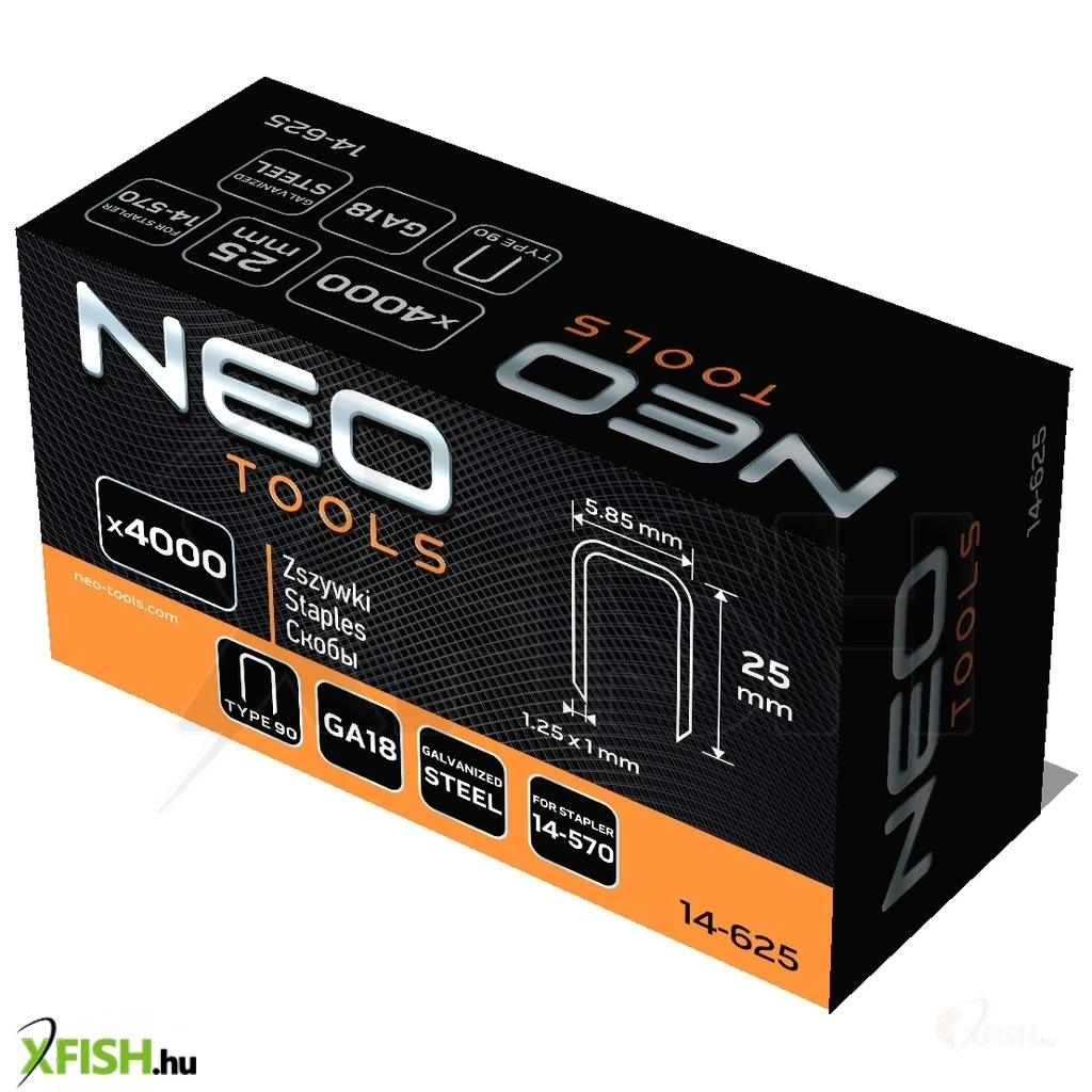 Neotools tűzőkapocs, horganyzott 90-es tipus, pneumatikus tűzőgéphez (14-570), ga18, 25mm, 4000db