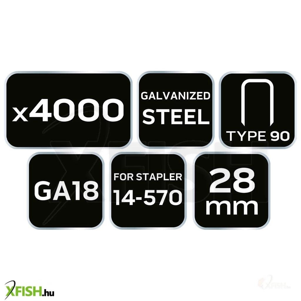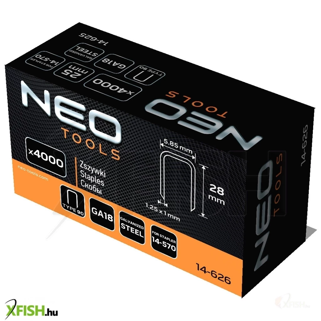 Neotools tűzőkapocs, horganyzott 90-es tipus, pneumatikus tűzőgéphez (14-570), ga18, 28mm, 4000db