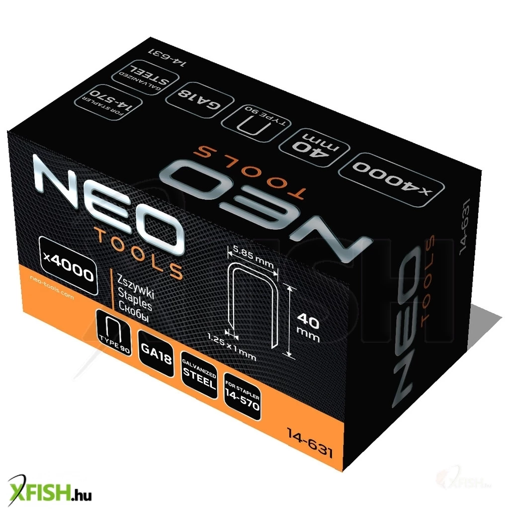 KategóriákKategóriákKerti szerszámok, eszközök Rögzítéstechnika Neotools tűzőkapocs, horganyzott 90-es tipus, pneumatikus tűzőgéphez (14-570), ga18, 40mm, 4000db
