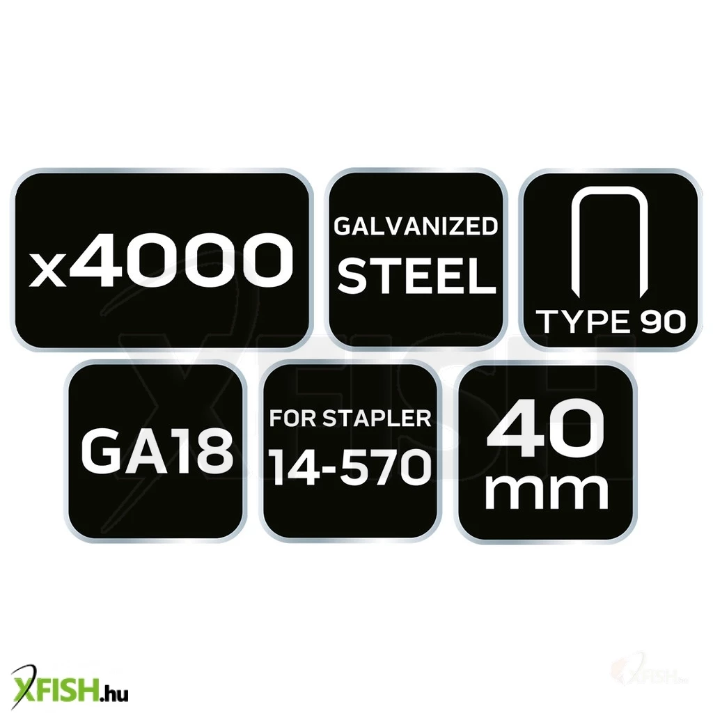 Neotools tűzőkapocs, horganyzott 90-es tipus, pneumatikus tűzőgéphez (14-570), ga18, 40mm, 4000db