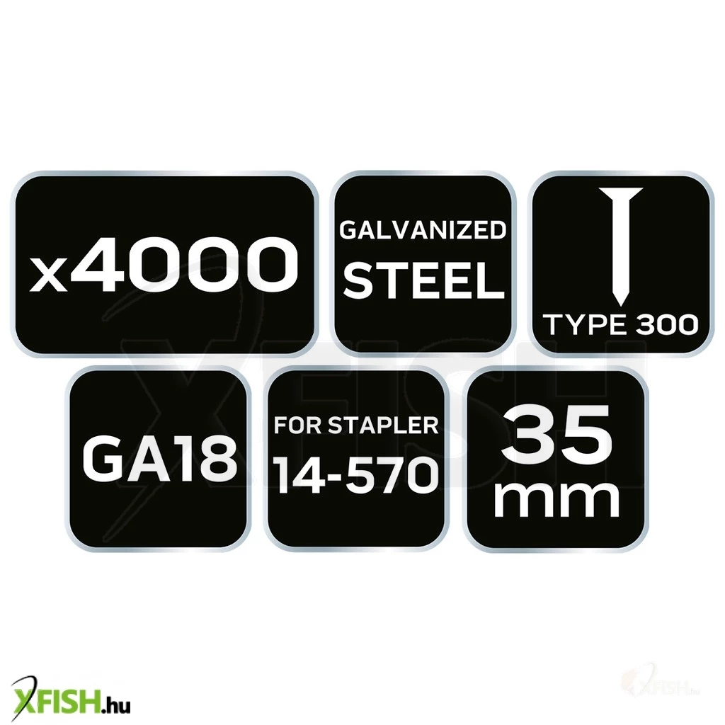 Neotools tűzőszeg, horganyzott 300 (f) tipus, pneumatikus tűzőgéphez (14-570), ga18, 35mm, 4000db