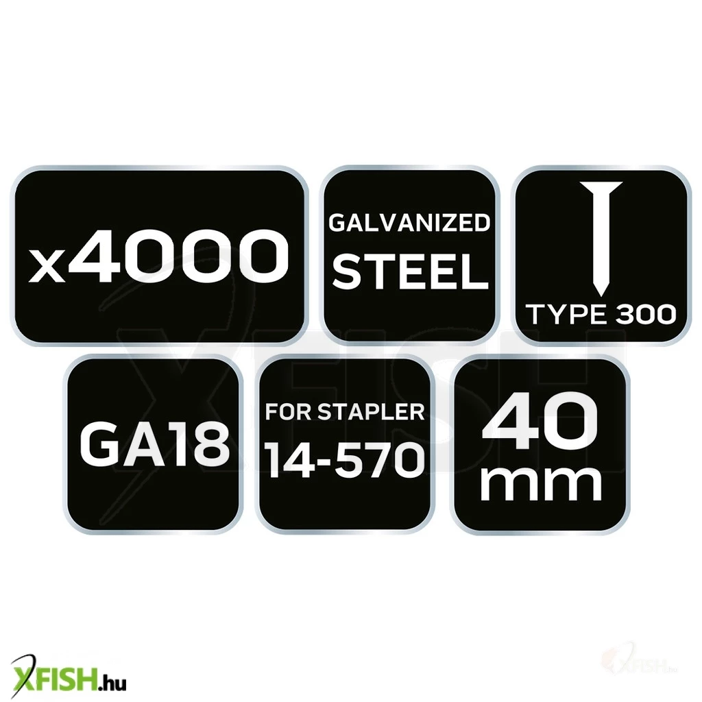 A 40 mm-es hosszúságú tűzőszeg kiválóan alkalmas különböző anyagok, például fa- vagy fémlemezek, furnérok vagy egyéb építőipari anyagok rögzítésére. A tűzőszeg horganyzása jelentősen növeli az élettartamot, így a legkeményebb körülmények között is megbízhatóan teljesít.