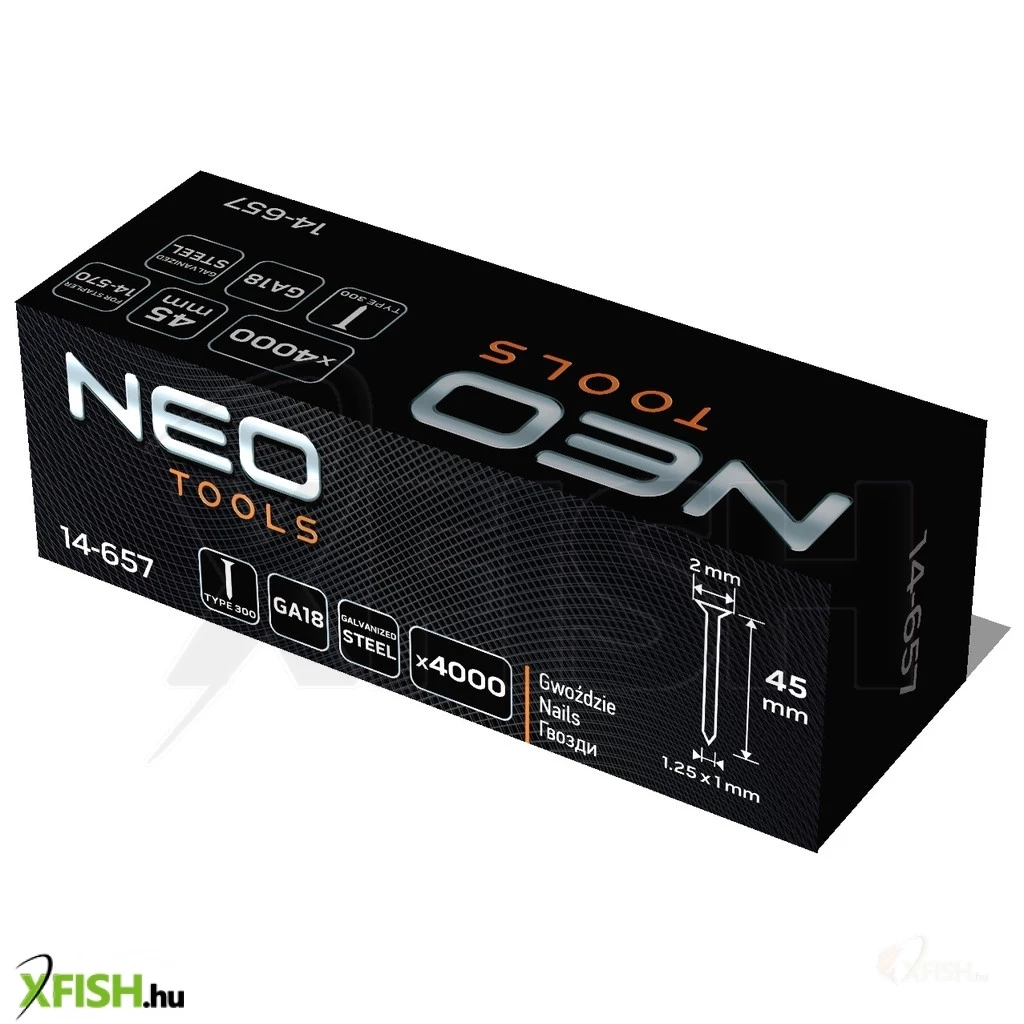 KategóriákKategóriákKerti szerszámok, eszközök Rögzítéstechnika Neotools tűzőszeg, horganyzott 300 (f) tipus, pneumatikus tűzőgéphez (14-570), ga18, 45mm, 4000db