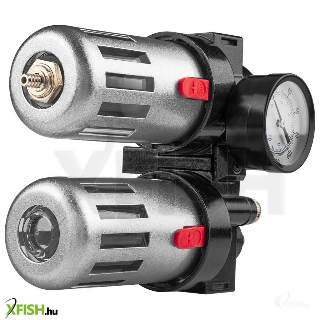 A Neotools pneumatikus víztelenítő szűrő és olajzó praktikus és hatékony megoldást nyújt a sűrített levegő tisztítására és kezelésére, leginkább a precíz és megbízható műhelymunkákhoz tervezve. Ez a készlet egy szűrőből, olajozóból és manométeres nyomáscsökkentőből áll, és lényegesen meghosszabbítja a pneumatikus szerszámok élettartamát. A szűrő akár 20 mikrométeres szűrési fokozattal rendelkezik, így hatékonyan védi eszközeit a szennyeződések és nedvesség okozta károsodásokkal szemben, melyek gyakran a sűrített levegőben találhatók.