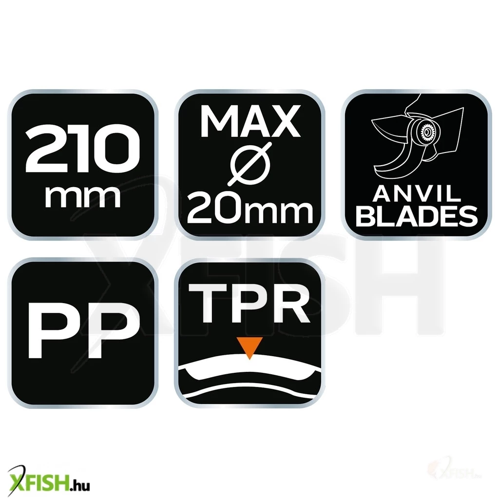 Kulcsszavak: Neotools metszőolló, kézi szerszámok, precíz metszés, teflon bevonat, kertészkedés, rávágó olló, kényelmes fogás, tartósság, 210 mm hosszú, max 20 mm vágás, ergonomikus.