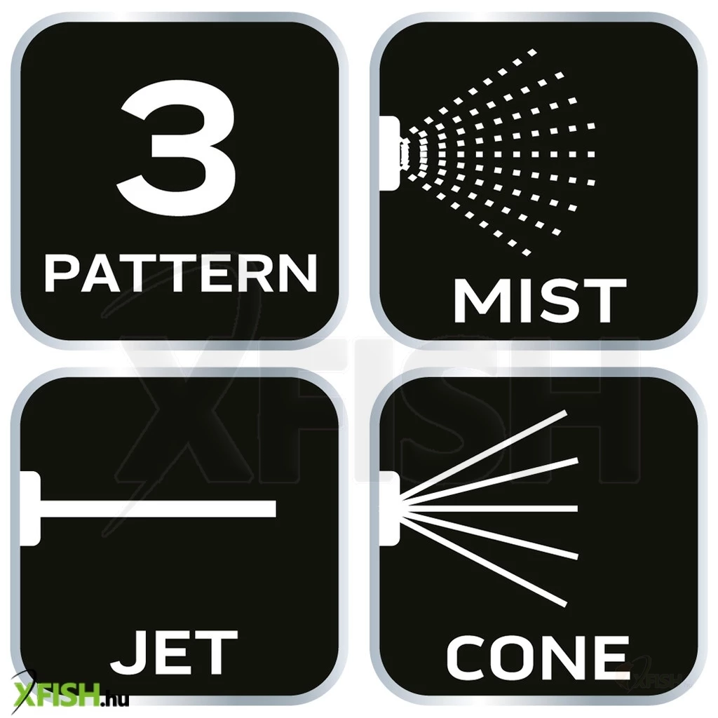 - 3 öntözési funkció: erőteljes tömör vízsugár, ködölő vízsugár, zuhanyjellegű vízsugár