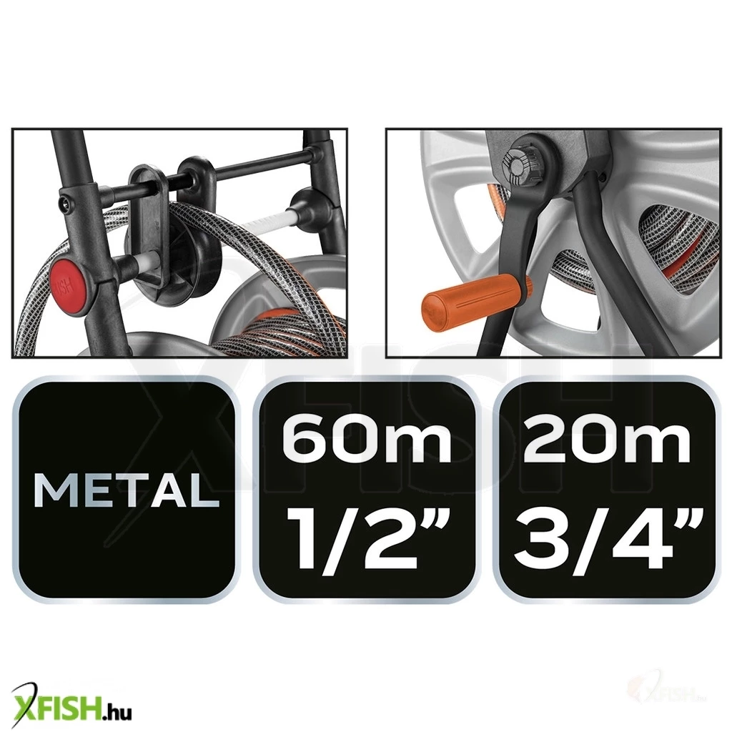 - 60 m 1/2" tömlő, illetve 20 m 3/4" tömlő tárolására alkalmas