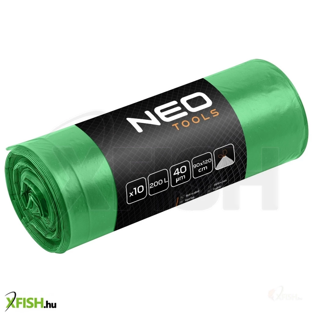 KategóriákKategóriákKerti szerszámok, eszközök Kőműves szerszám Neotools szemeteszsák 120l, 70x110cm, zöld, erősített húzószalagos, vastagság40mic, 10db
