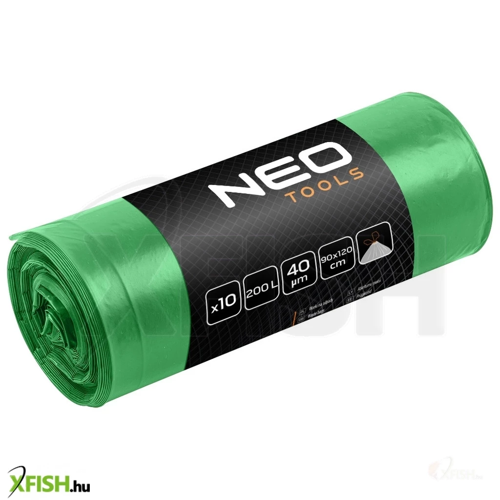 KategóriákKategóriákKerti szerszámok, eszközök Kőműves szerszám Neotools szemeteszsák 200l, 90x120cm, zöld, erősített húzószalagos, vastagság40mic, 10db