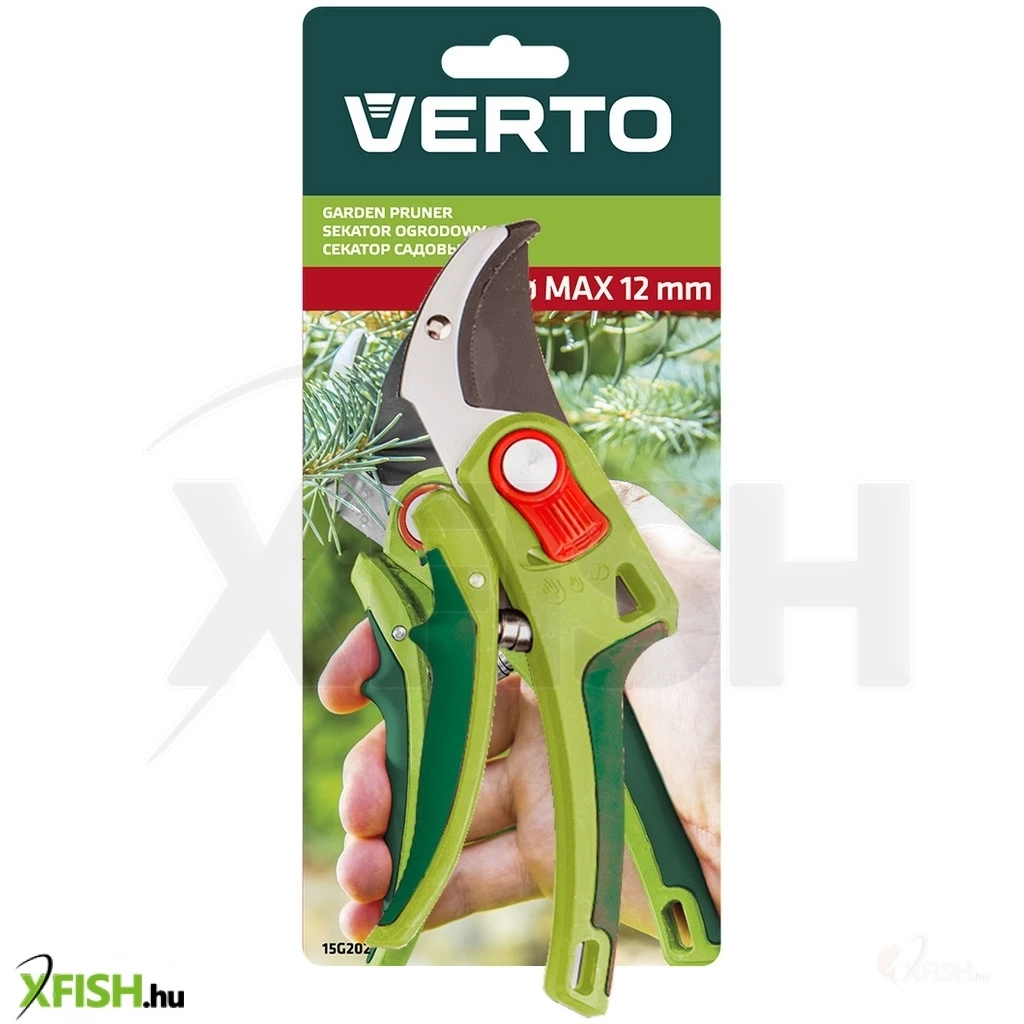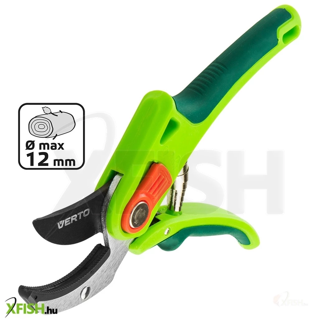 Vágóüllős kerti metszőolló, maximális vágási átmérő 12 mm, beállítás szabályzó, PTFE bevonat, csúszásmentes fogantyú