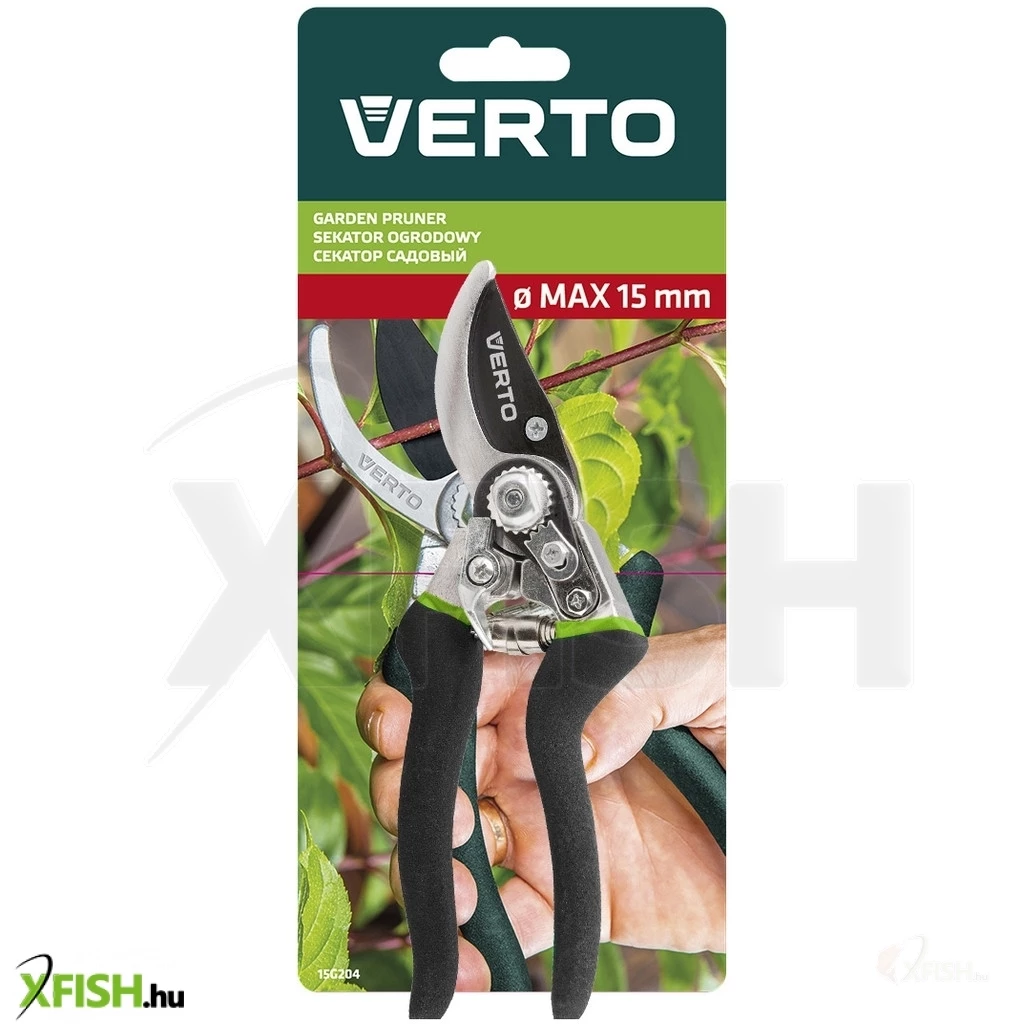 Univerzális kerti metszőolló 220 mm, maximális vágási átmérő 15 mm, PTFE bevonat, fém rugó, csúszásmentes fogantyú