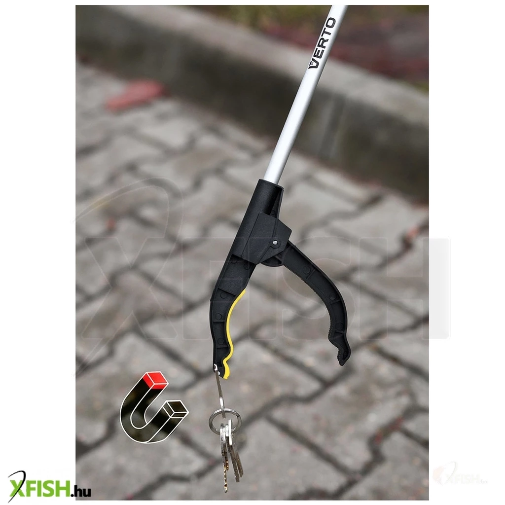 A VERTO 15G459 típusú, 760 mm hosszú alumínium szemétfogója legfeljebb 1 kg súlyú tárgyak megfogására és felemelésére szolgál. Az alumíniumból készült, könnyűszerkezetes szerkezet és a műanyag (PP) fogantyú, amely a munkarészben TPR gumival van bevonva, így a teljes súlya mindössze 150 g. A megfogó rész mágnessel van ellátva fémtárgyak emeléséhez. A megfogó univerzálisan alkalmazható.