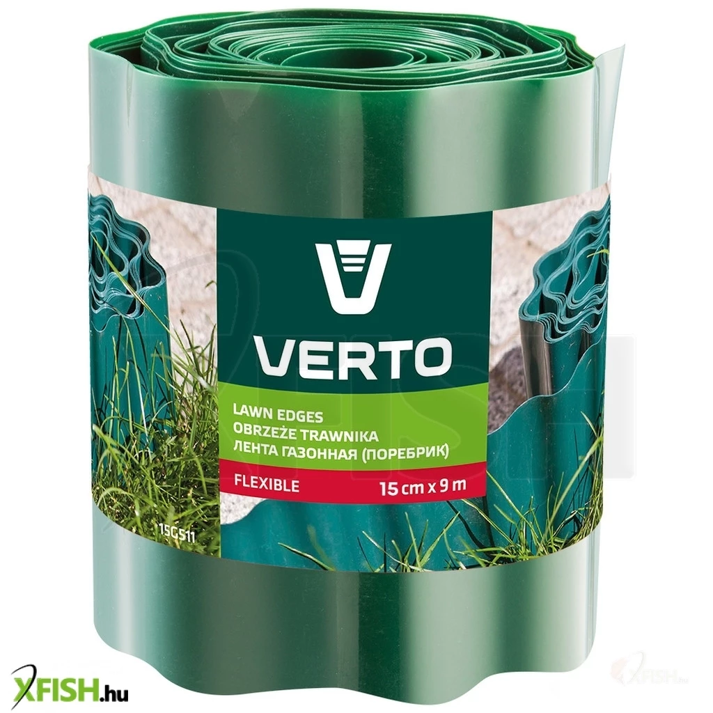 Gyepszegély 15 cm x 9 m, zöld, rugalmas műanyag