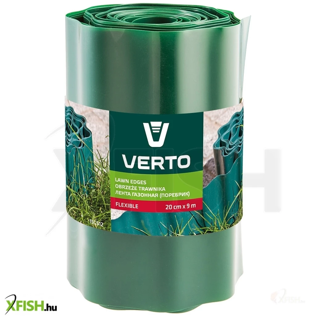 Gyepszegély 20 cm x 9 m, zöld, rugalmas műanyag