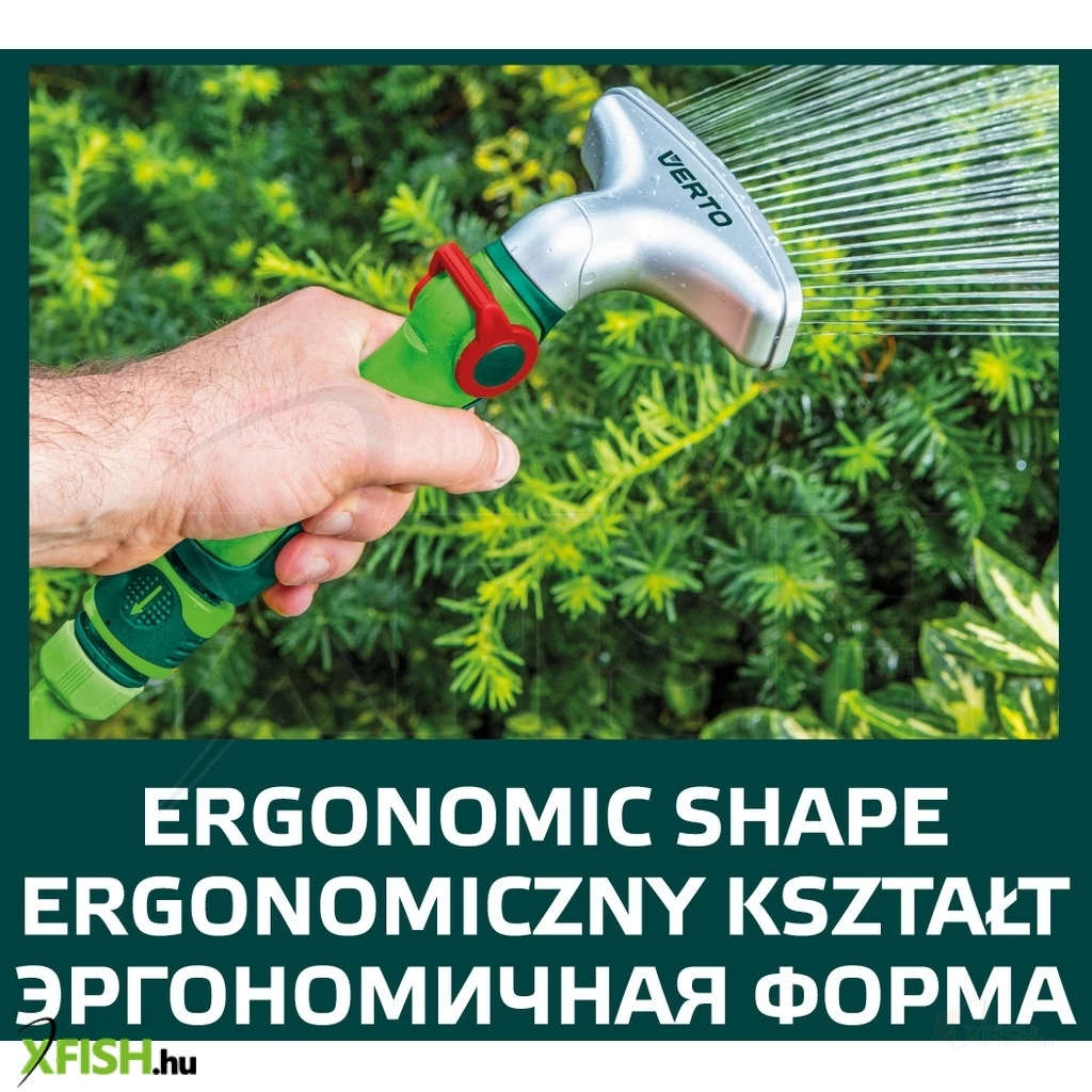 Öntöző pisztoly, széles, hüvelykujjal szabályozható, áramlás erő választás, nagy hatótávolságú széles vízsugár
