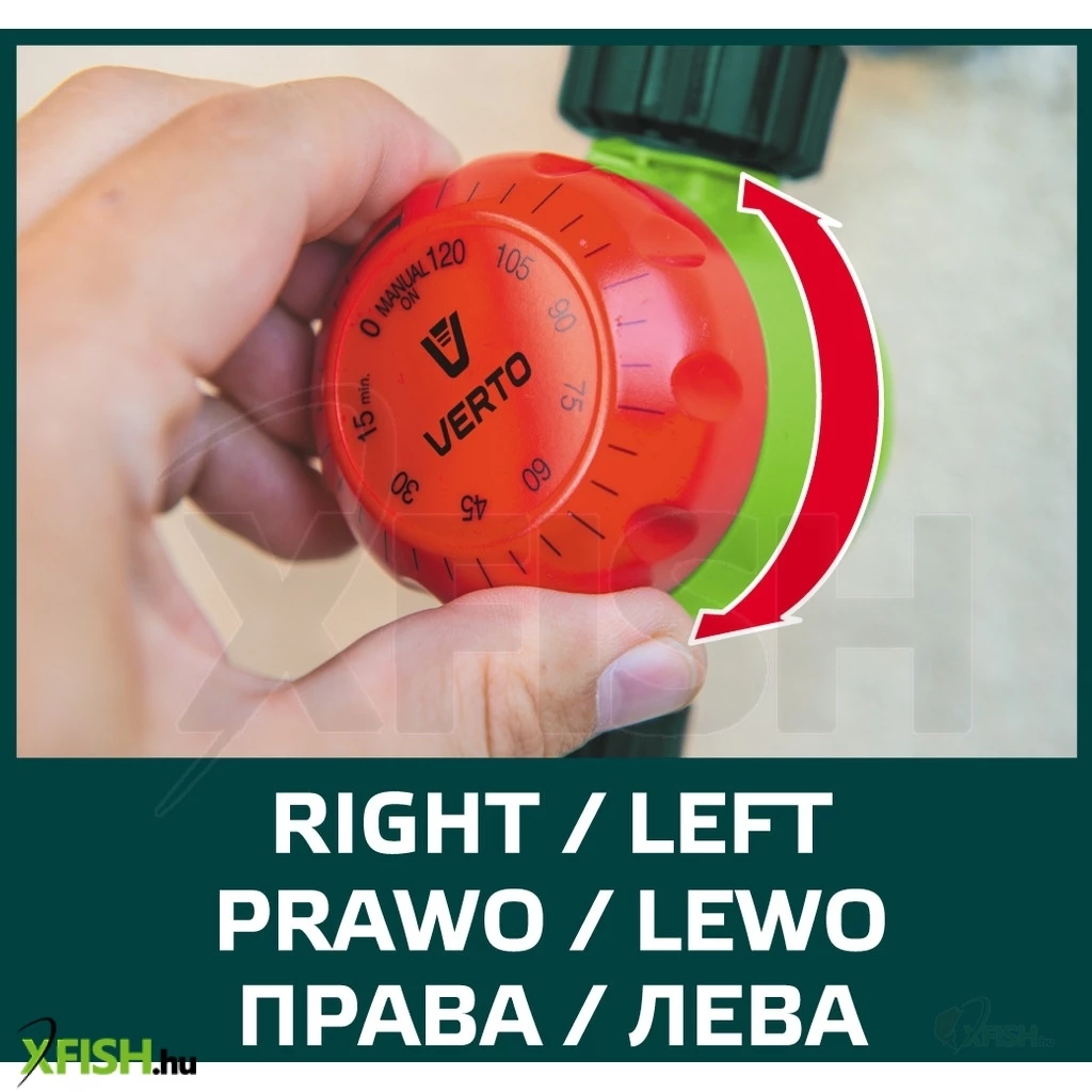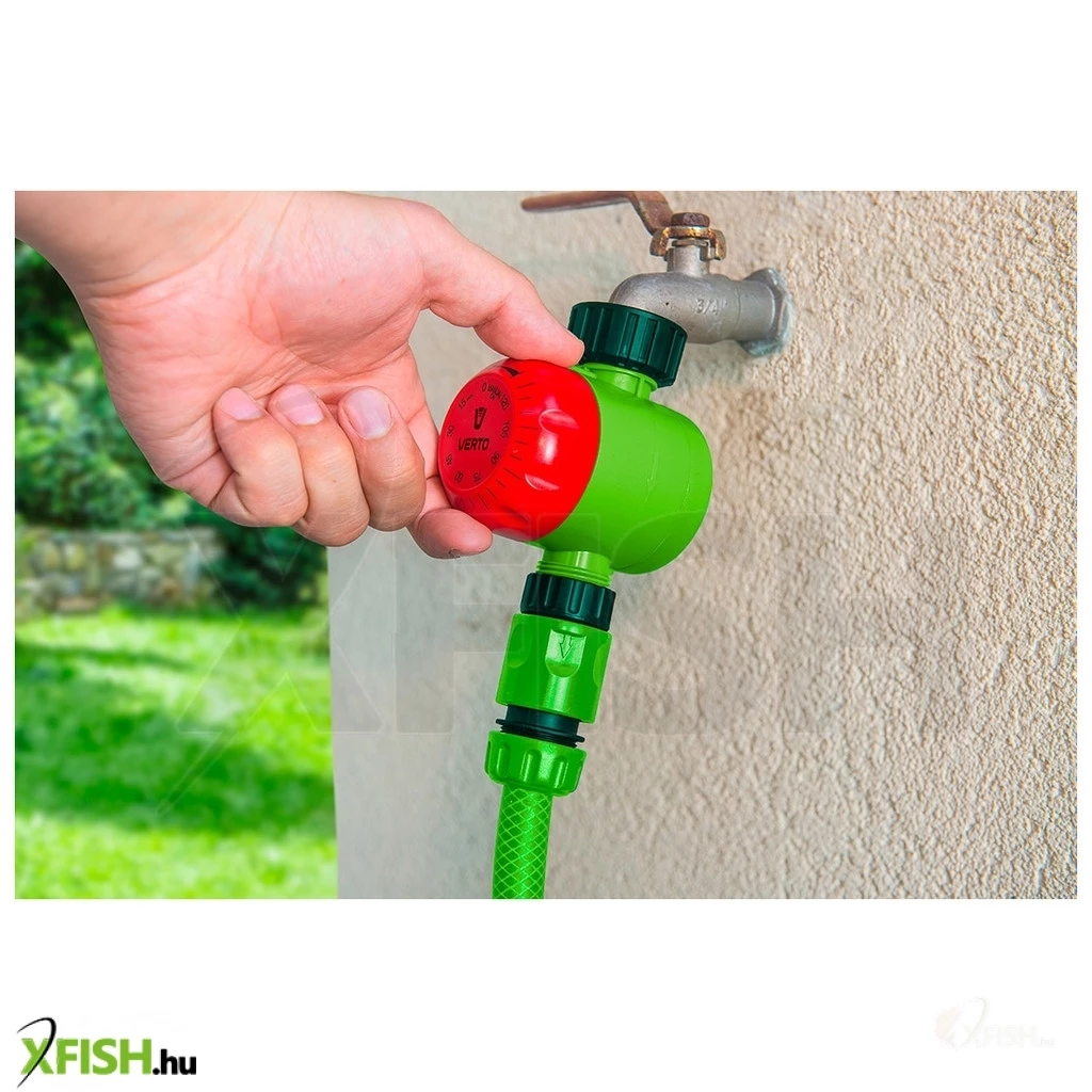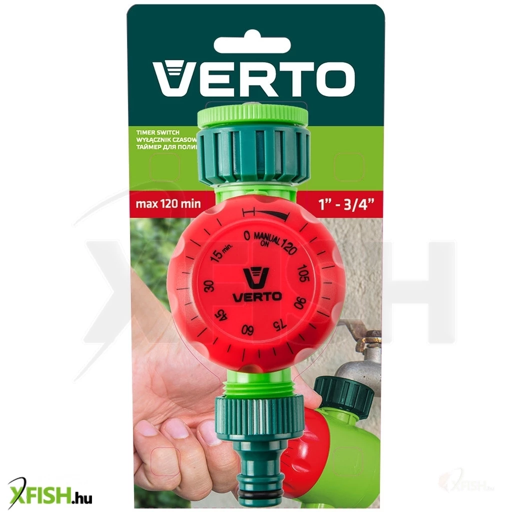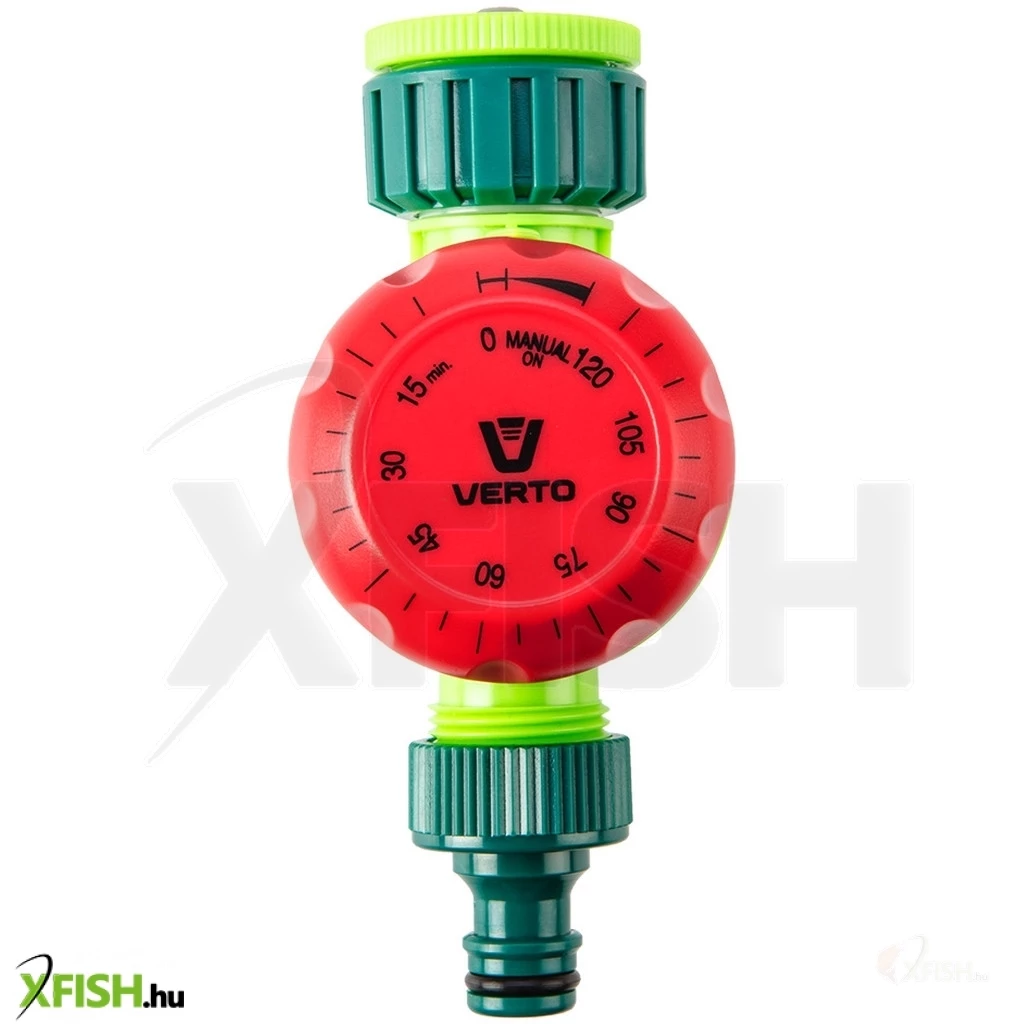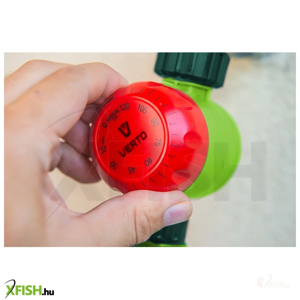 Öntöző időzítő kapcsoló, kézi óra, terjedelme 120 perc, a tárcsa bármely irányban forgatható a mechanika megrongálása nélkül, vízcsap csatlakozó 1/2" és 3/4"