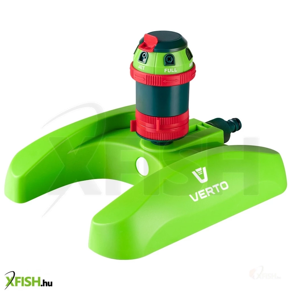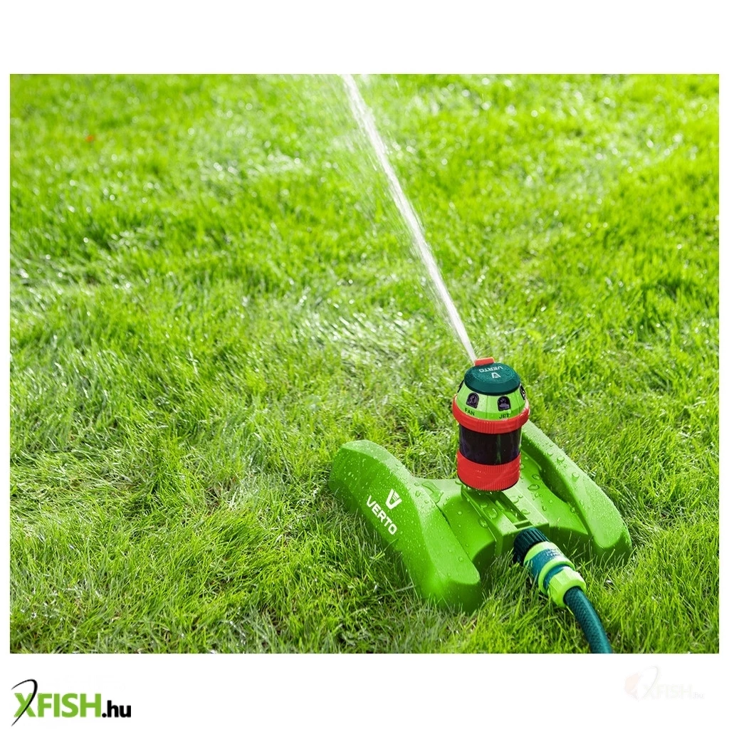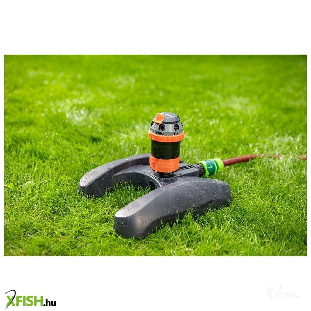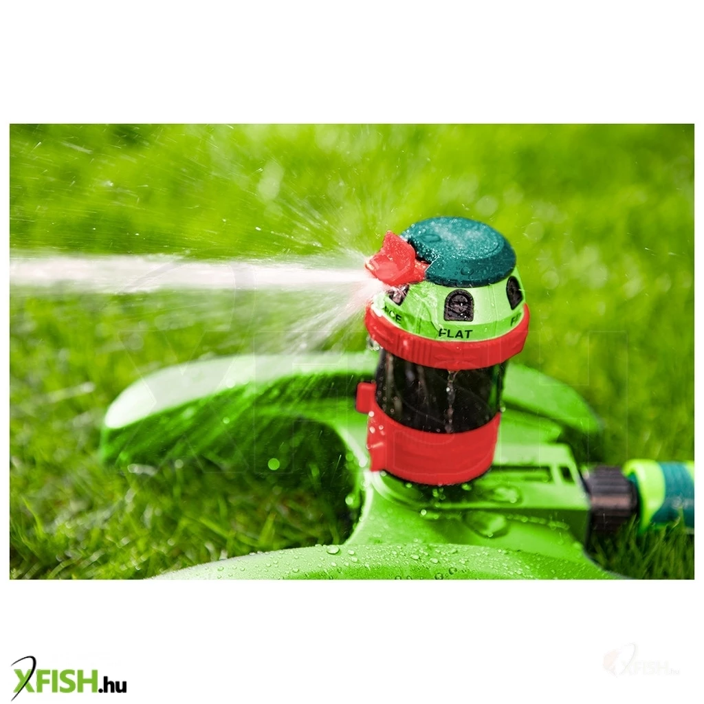 Kerti locsoló, 6- funkciós, meghajtott, szabályozott ható távolság, stabil műanyag talp, szabályozott öntözési terjedelem és vízsugár szög, maximális öntözött terület 350 m2