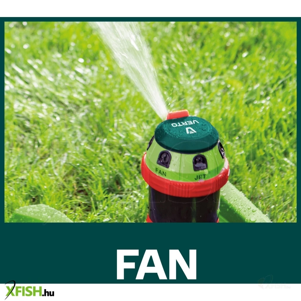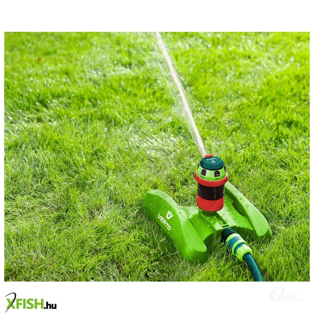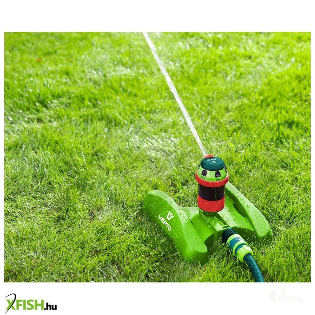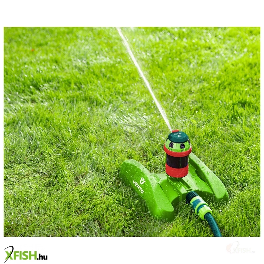 Kerti locsoló, 6- funkciós, meghajtott, szabályozott ható távolság, stabil műanyag talp, szabályozott öntözési terjedelem és vízsugár szög, maximális öntözött terület 350 m2
