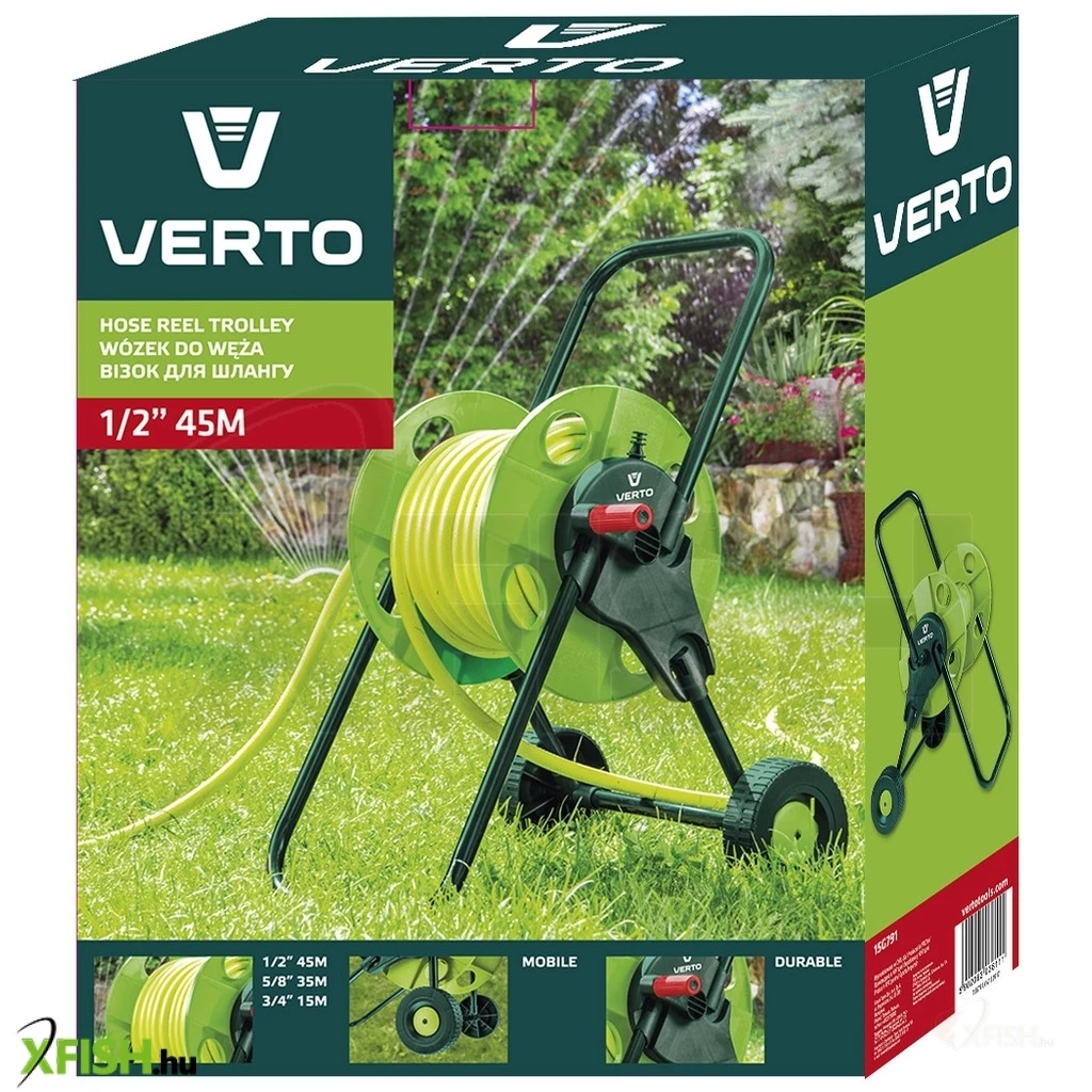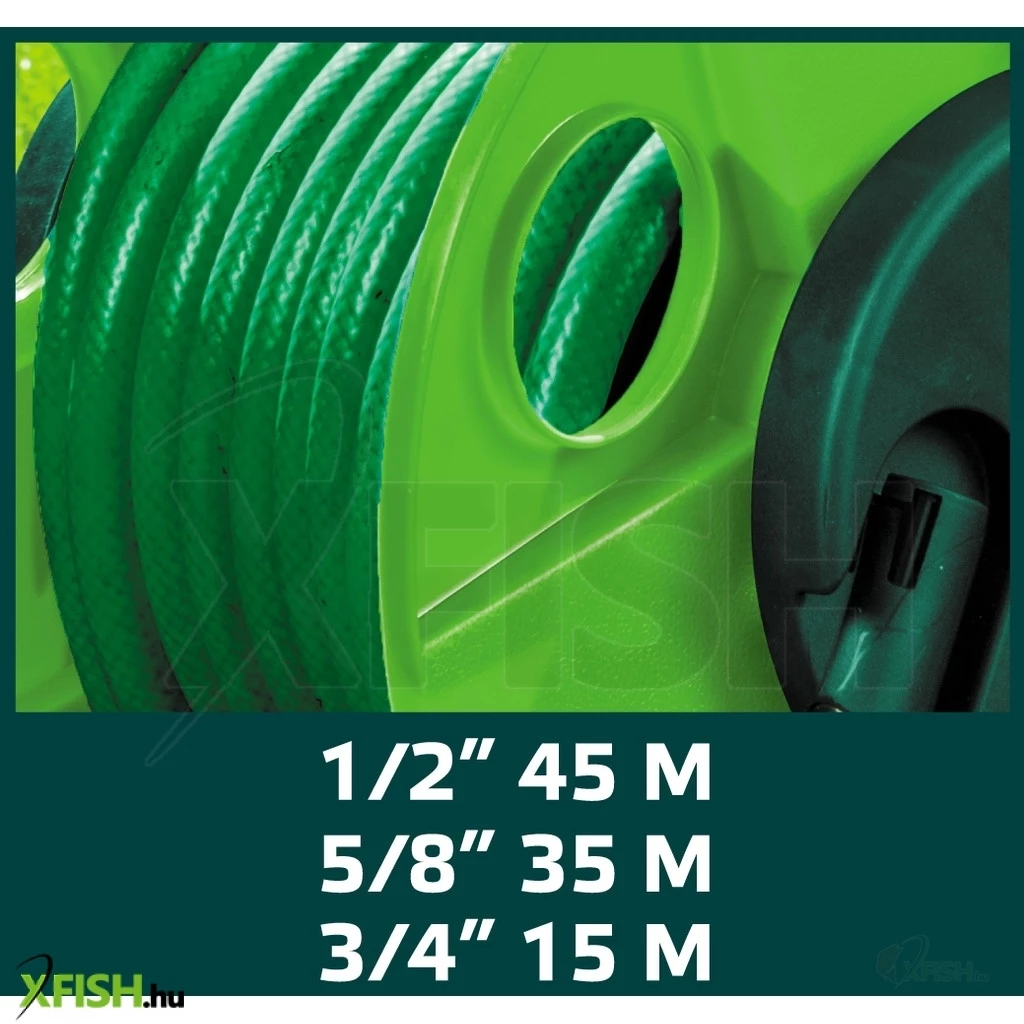 Kerti tömlőkocsi, felcsévélhető körülbelül 45 m 1/2" tömlő, körülbelül 35 m 5/8" tömlő, körülbelül 15 m 3/4" tömlő, hordozható, tartós műanyag