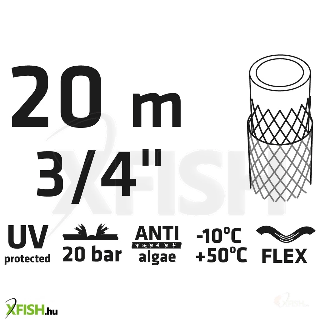 Kerti tömlő 20 m, 3/4" ECONOMIC, UV sugárzásnak ellenálló, szakító szilárdsága max. 20 bar, alga lerakódás gátló rendszer, üzemi paramétereit (főképpen rugalmasságát) megőrzi -5°C és +30°C hőmérséklet között