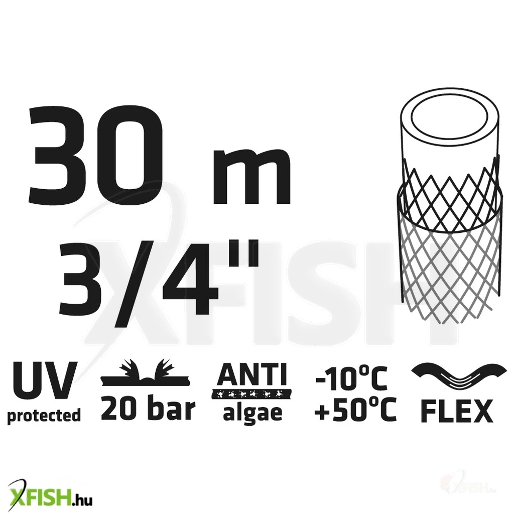 Kerti tömlő 30 m, 3/4" ECONOMIC, UV sugárzásnak ellenálló, szakító szilárdsága max. 20 bar, alga lerakódás gátló rendszer, üzemi paramétereit (főképpen rugalmasságát) megőrzi -5°C és +30°C hőmérséklet között