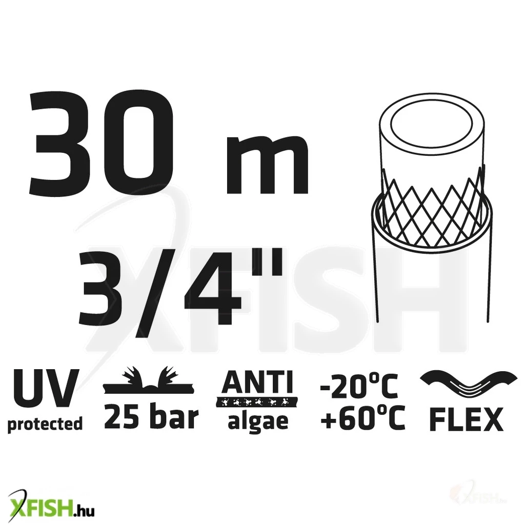 Kerti tömlő 30 m, 3/4" PROFESSIONAL, UV sugárzásnak ellenálló, szakító szilárdsága max. 25 bar, alga lerakódás gátló rendszer, üzemi paramétereit (főképpen rugalmasságát) megőrzi -10°C és +45°C hőmérséklet között