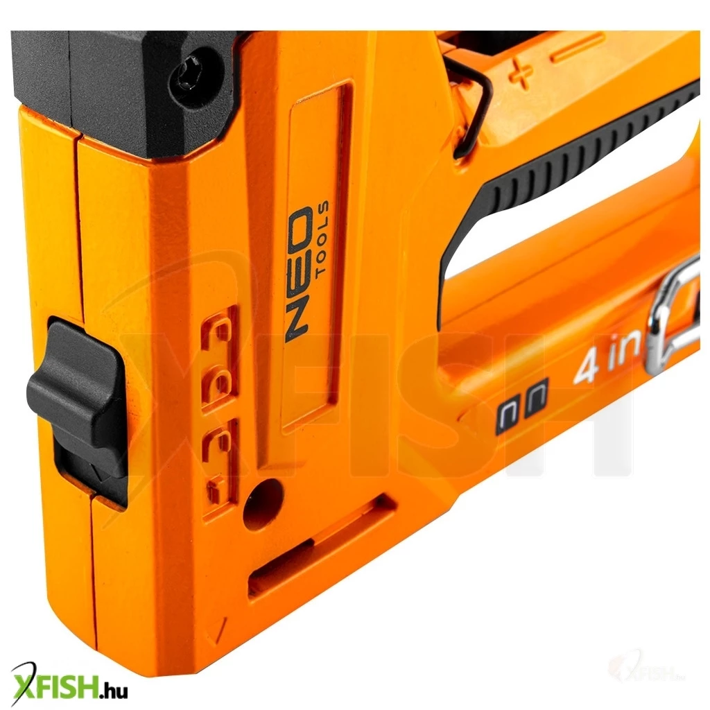 A Neotools tűzőgép masszív alumíniumból készült, ami könnyedséget és tartósságot biztosít használat közben. A gumírozott, ergonomikus markolatnak köszönhetően a munkavégzés kényelmes és fáradtságmentes, hiszen a kialakítás minimálisra csökkenti a szükséges erőbefektetést. Ez a tervezés különösen előnyös azoknak, akik hosszú távon terpítős, kárpitozási vagy kisebb javítási munkák során kívánják használni az eszközt.