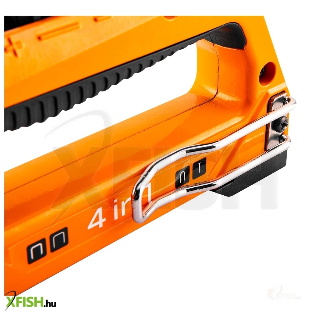 A Neotools 4 az 1-ben tűzőgép minden kárpitos és barkácsoló számára nélkülözhetetlen eszköz a rögzítéstechnika világában. Ezzel a praktikus és sokoldalú eszközzel egyszerűen és hatékonyan rögzíthetők egymáshoz különböző anyagok, legyen szó fáról, textíliáról, szőnyegekről vagy farostlemezekről. A tűzőgép széles állítási tartománya lehetővé teszi a 6-14 mm-es J, G, L és E tűzőkapcsok használatát, így egyetlen eszközzel többféle igényt is kielégíthet egyszerűen.