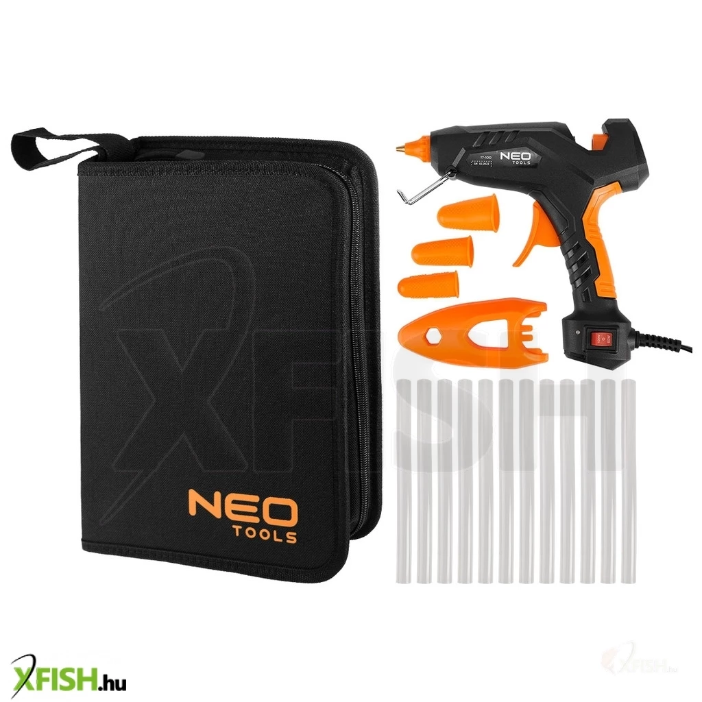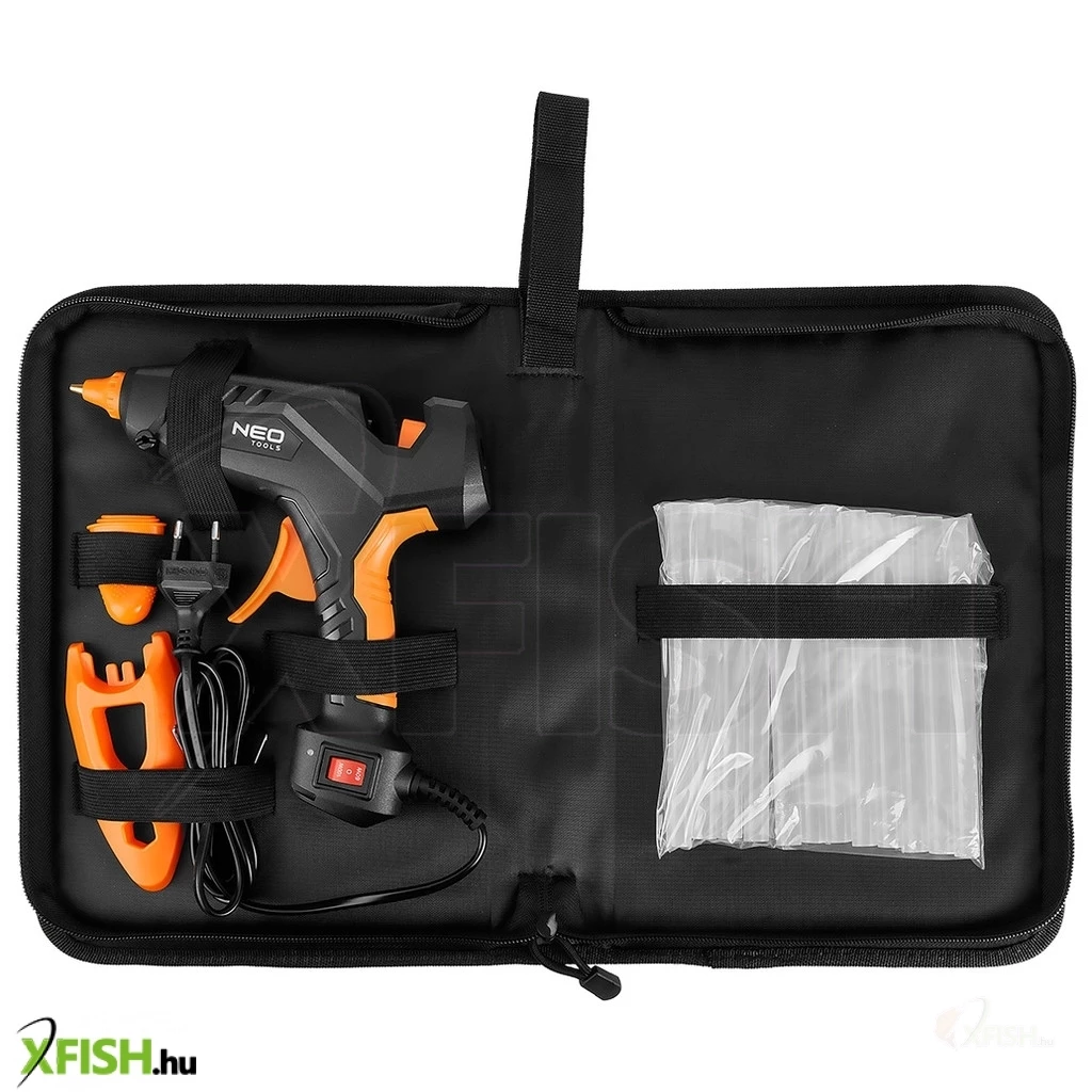 Neotools ragasztópisztoly 11mm, 60/100w, 12 ragasztópatron, 3 ujjvédő, textil tok