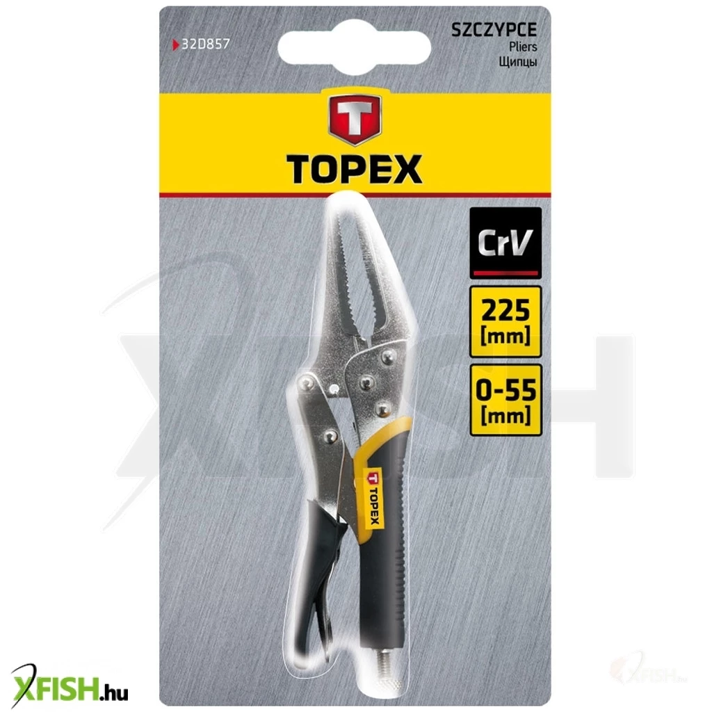 Önzáró fogó, hosszú, 225 mm, 0-55 mm tartomány, CrV acél, bimateriál markolat