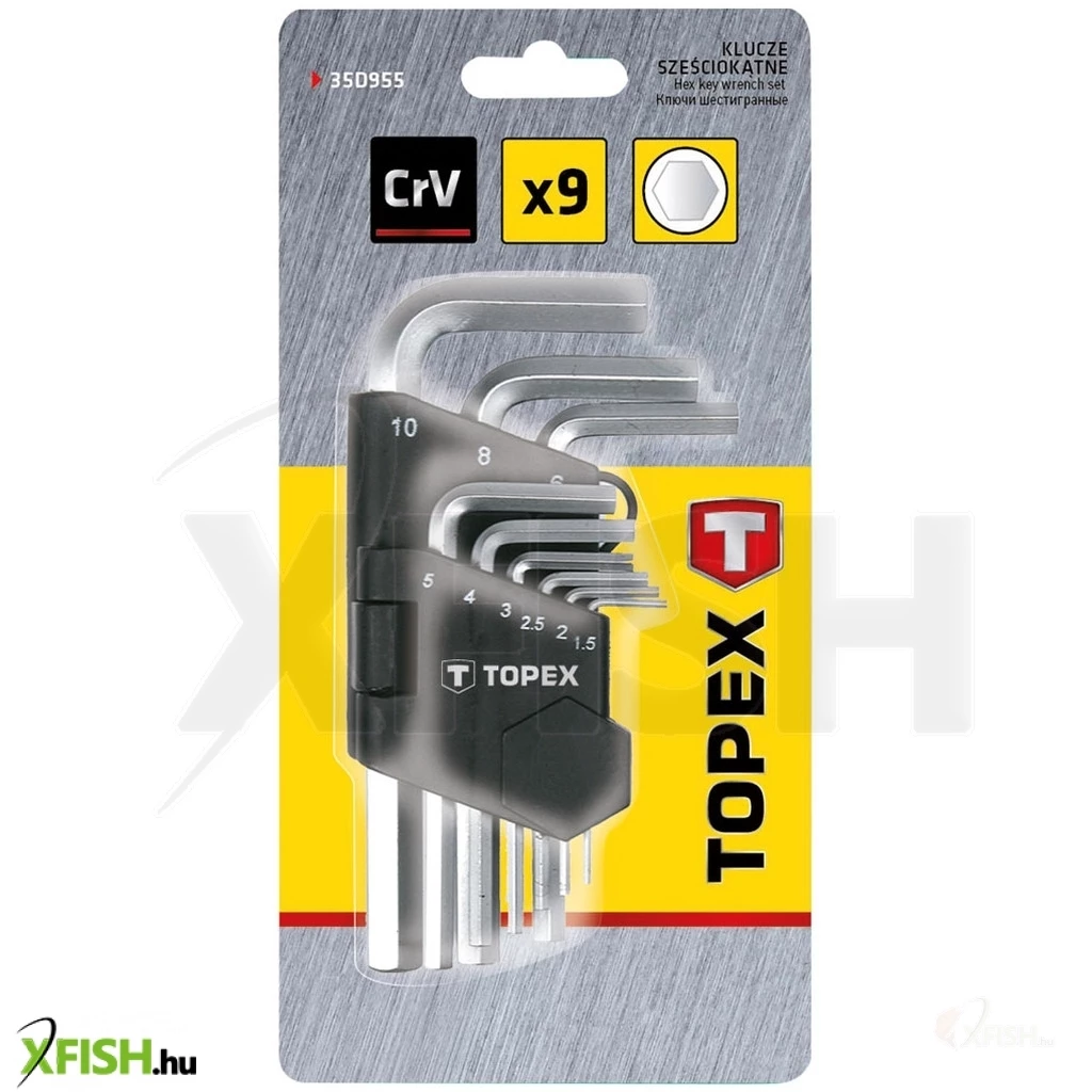 Imbuszkulcs készlet 10 db­os, 1,5-10 mm, műa.tárolóban, CrV, méretek:1.5, 2, 2.5, 3, 4, 5, 6, 8, 10 mm, rövid, CrV acél