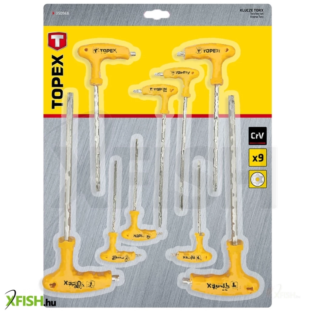 Torx kulcs készlet 9 dbos, T10-T50, méretek: T10, T15, T20, T25, T27, T30, T40, T45, T50, CrV acél, lukas kialakítás, markolat