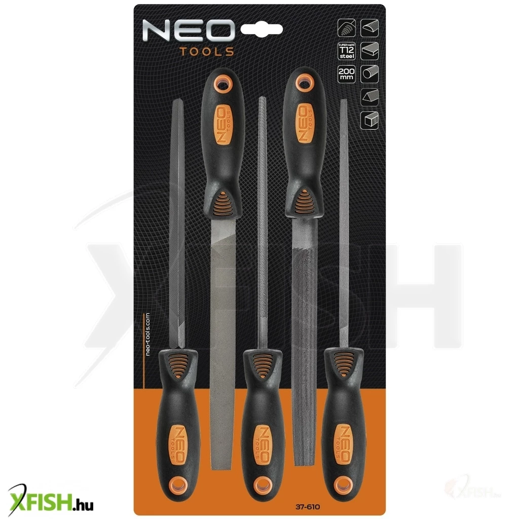 A Neotools reszelő készlet 5db fémhez a horgászoknak és barkácsolóknak egyaránt nélkülözhetetlen szerszám, amely kiváló minőségű T12 acélból készült, biztosítva a hosszú élettartamot és a kiváló teljesítményt. Az 5 darabos készlet különféle reszelőket tartalmaz, köztük lapos, félkerek, kerek, négyzet és háromszög alakú reszelőket, hogy minden feladatra a megfelelő eszközt használhassa. A fémreszelők finomsága 200-as, ami pontos és precíz munkavégzést tesz lehetővé, miközben a finomsági fokozata 2, így ideális a közepesen finom reszelési munkákhoz.
