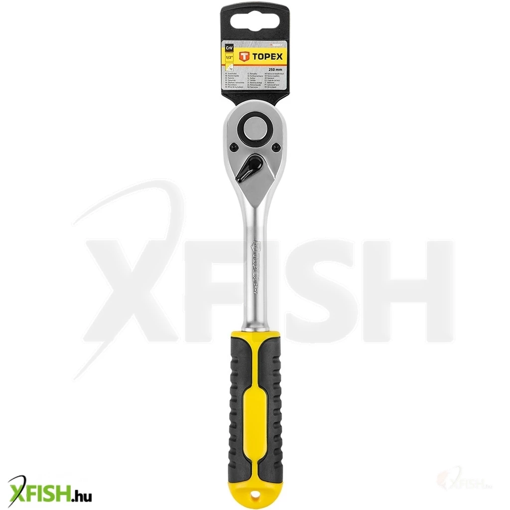 Az 1/2" racsni, 250 mm 38D541-1 TOPEX tartós szerszám, ideális mindenféle műhelymunkához és mechanikai munkához. A 72 foggal felszerelt racsni sima és pontos mozgást biztosít, így a feladatok még a nehezen hozzáférhető helyeken is hatékonyan elvégezhetők. Kiváló minőségű CRV (króm-vanádium) acélból készült, kivételes szilárdság és kopásállóság jellemzi. A TOPEX racsni ergonomikus kialakítása kényelmes használatot biztosít.
