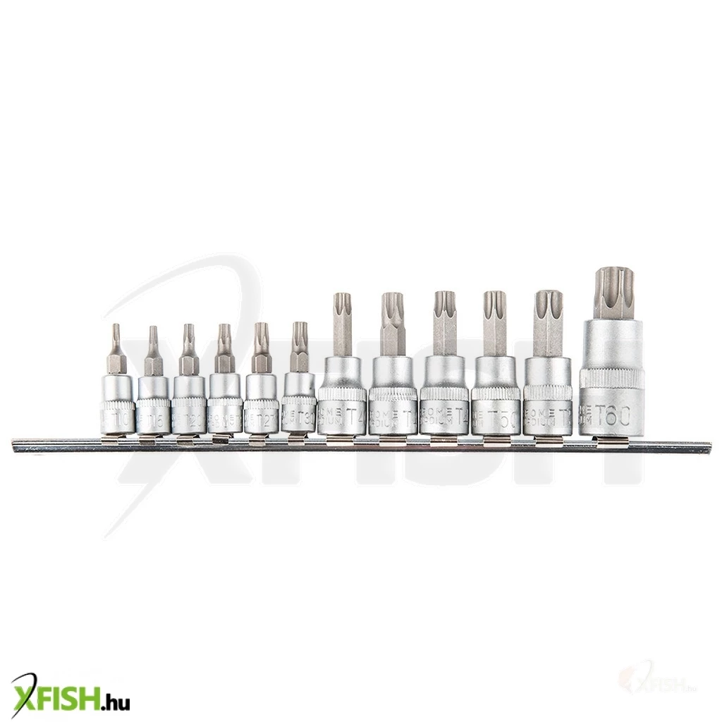 Torx dugóbitek, 1/4", 3/8" és 1/2", 12 db-os készlet, méretek: 1/4": T10, T15, T20, T25, T27, T30, 3/8": T40, T45, T47, T50, T55, 1/2": T60.