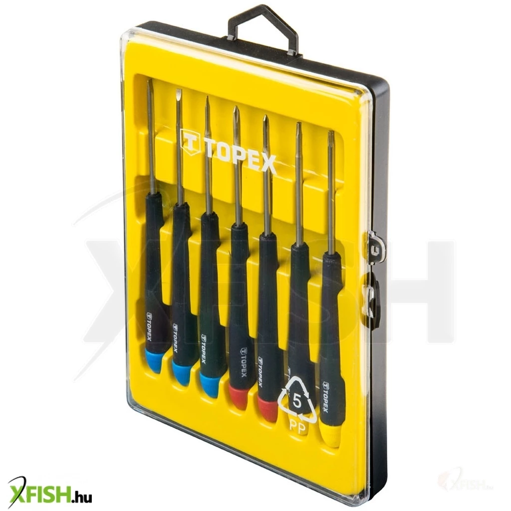 Műszerész csavarhúzó készlet 7 dbOos, méretek: 2 x 50 mm, 2.5 x 50 mm, 3 x 50 mm, PH000 x 50 mm, PH0 x 50 mm, T8 x 50 mm, T10 x 50 mm, CrV acél