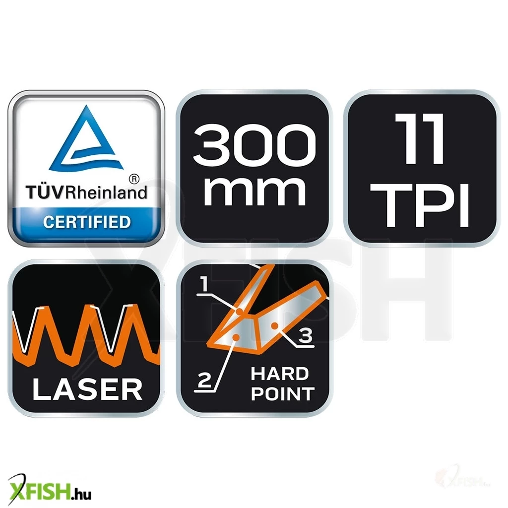 Az eszköz lenyűgöző, 11 tpi (teeth per inch) fogazási szerkezettel rendelkezik, amely biztosítja a sima vágási felületet és a könnyű fűrészelést. Ez a fogazás tökéletesen egyensúlyozza a vágási sebességet és a precizitást, így még a legösszetettebb munkák során is kiváló eredményeket nyújt. A 11 tpi sűrűsége különösen előnyös, amikor tiszta és szakadásmentes széleket szeretne húzni, minimalizálva a további utómunkálatok szükségességét.