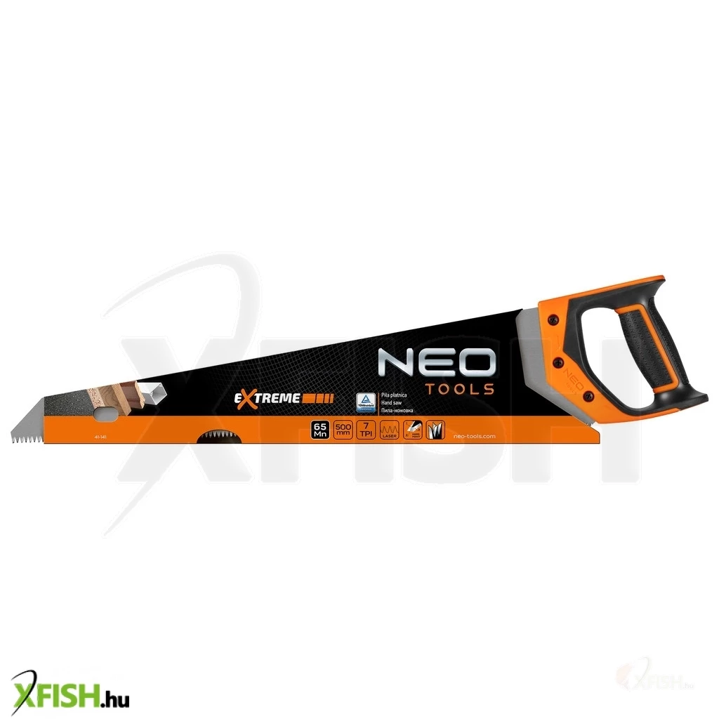 A Neotools kézifűrész 500 mm hosszú pengével és 7 tpi-s (teeth per inch - fogak per hüvelyk) fogazattal rendelkezik, ami ideális választássá teszi a precíz vágási feladatokhoz. Ez a kézifűrész különösen hatékony faanyagok, PVC csövek, gipszkarton és egyéb könnyebb anyagok vágásában, miközben kényelmes fogást biztosít hosszabb használat során is.
