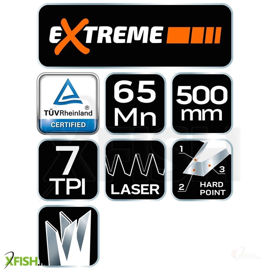A fűrész ergonomikus markolata csúszásmentes anyagból készült, ami garantálja a biztonságos és kényelmes használatot különféle körülmények között. Ez a markolat kiválóan illeszkedik a kézbe, lehetővé téve a stabil fogást és az erőhatékony munkavégzést, csökkentve a kéz fáradtságát, még hosszú vágások esetén is.