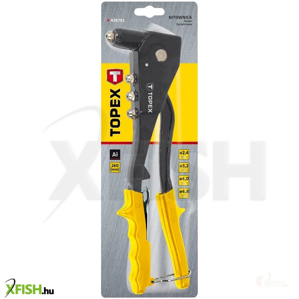 Szegecshúzó 2,4 mm, 3,2 mm, 4,0 mm, 4,8 mm alumínium szegecsekhez, 4 szegecshúzó fej, hosszúsága 260 mm, acél ház, villáskulcs