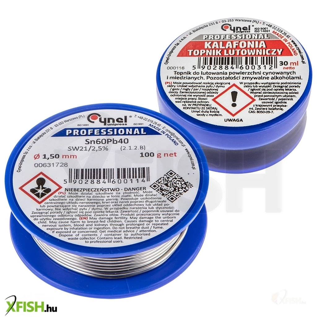 Lágyforrasztó klt., forrasztóón és gyanta, forrasztóón 60% Sn, O1,5 mm, SW21, 100 g, forrasztó gyanta 35 ml